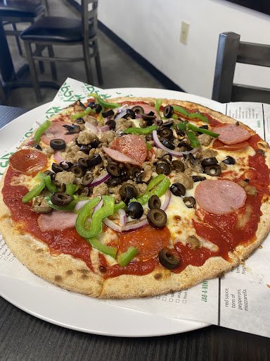 Read morePizza only comes in one size about 11”. Served very quick. Vegetables could have been cooked a little more( not negative just my preference) Also got a Caesar salad was large enough for 2 people (a little too much dressing…but just me). Still a great place for a quick pizza cooked in a big round oven(visible). Handicap accessible. Order from counter and served to table. Got the order wrong for supreme. They caught the error when it was served and brought correct pizza and said to keep wrong pizza at no charge. That’s great PR. Will go there again. Also family that that owns is Greek…so you know it...