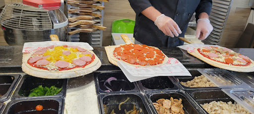 Came in today for a quick lunch and the pizza was ok. It wasn’t horrible and wasn’t the best. Prices are pretty reasonable for the size. They don’t skimp on the toppings either, kind of wish they did though on my pizza, only being the crust is pretty thin and I got a supreme so the amount of toppings where pretty heavy for the crust. Also being I worked in the pizza business before for many of years in my younger days my other big complaint was they center load the toppings meaning they pile them up in the middle of the pizza and don’t spread them out also makes eating a thin crust pizza pretty impossible when all the toppings are in the middle. I was always taught everywhere I worked was to spread them out and it wasn’t just mine I watched him do others like that also. Overall the 2 employees were nice and very polite. I still would eat here again and would still recommend this place to others especially since you can get a nice size decent personal pizza for like $12
