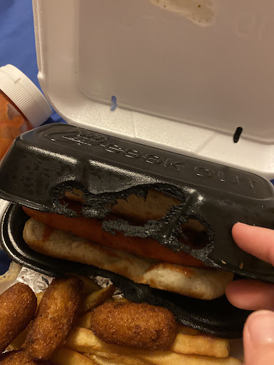 I really WISH these people would LISTEN 🎧 when ordering… Even went inside so they could not blame the mistake / misunderstanding on traffic and not hearing.. And because last time I was there I was stuck in traffic line FOREVER!!!!!! Ugh - ORDERED - TRAY #1 (it says a Jr tray) Hot Dog 🌭 Tray - with Mustard, Ketchup, Chili and Slaw… Bacon ranch wrap and Corn Dog & Drink - Sweet Tea… Employee: That’s is $12.90…. ME: “EXCUSE ME?? What in the world? For a $5.99 Tray it’s over $12?? “
