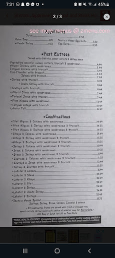 Read moreSo today is my second time ordering from here. I order to pickup for lunch. I always get the same thing at any Japanese restaurant- Hibachi Chicken with rice and mixed vegetables. So MY FIRST complaint or whatever is that they only offer sweet carrots with their lunch. I asked if I could get mixed vegetables (on the menu above hibachi chicken it said vegetables). The girl told me no even though vegetables was an option on the menu. Okay, so she said I could get another vegetable just not all of them. okay second time around, same girl.. she was nice to me both times, just seemed a little like she didn't know what she was doing. overall, the food was pretty good. I've had... better (Jade Dragon, thomasville & tokyo express, high point are a lot better) the white sauce was more orange colored than anything and had a different taste but it gave the chicken flavor. I mean I recommend it if it's a last resort lol but for the price you could even get a soup and better food at...
