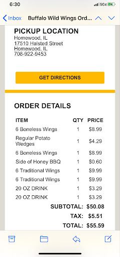 We all eat our wings, and when we are done, the burger still isn't out.... showed up about 10 mins after the other finished eating. Then we ask for boxes, and we get 1 box at a time.