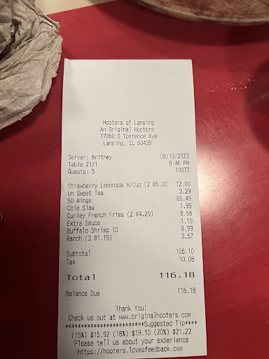 Read moreGot UberEats with Hooters this week and what a terrible decision that was. It was missing an item, which is understandable as no one is perfect, but the lack of customer service is not.