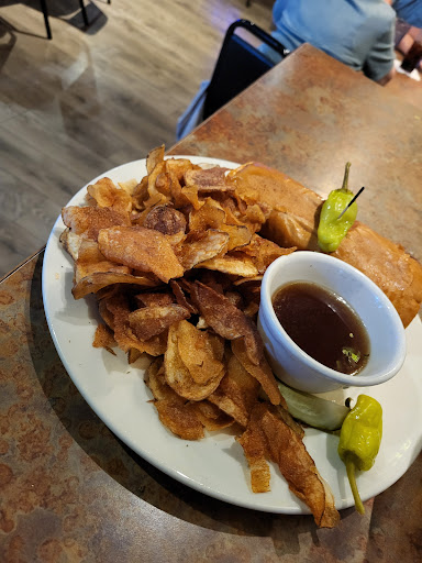 On to the food. The wings are juicy and well breaded. Bone in of course. Tuesday is wing night. Remember that. I tried the garlic parmesan wings, but next time I am aiming for the hot ones. Yes, there will probably be a next time. Chips are made in house and decent. Prime rib sandwich was on point and portions are what others say, healthy for the price.