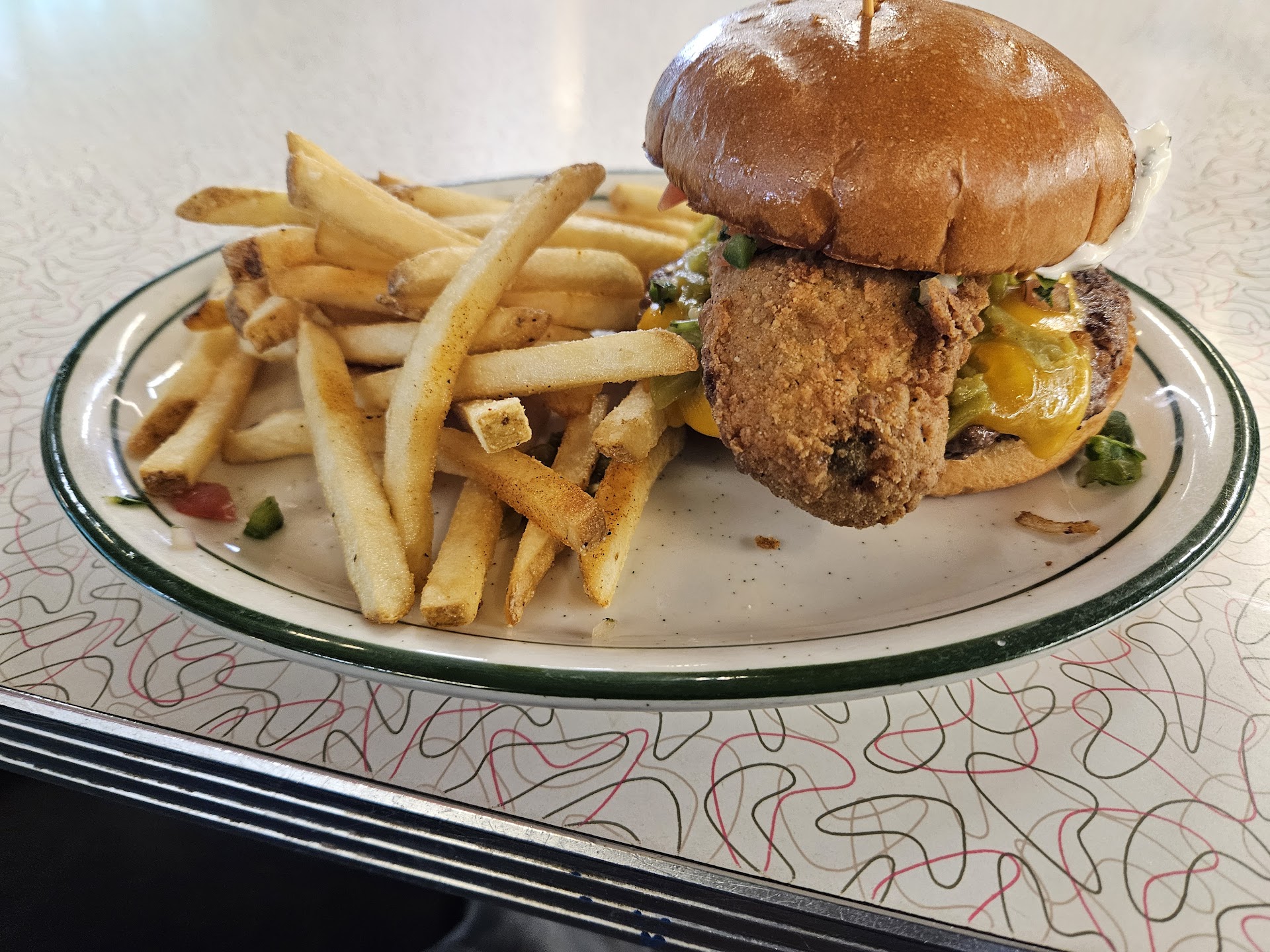 I'm in my mid-thirties and I can recall fun memories of this restaurant concept (I'd never eaten at this specific one, but the one on 104th). This restaurant has plenty of parking and the food we had was great! We tried the fries and funnel cake fries, both warm and cooked to perfection. I deducted a star due to the service. It wasn't bad necessarily just less than what I had expected from this restaurant based on my past visits to the other Gunther Toody's. I ordered online with a platform called "toast" which was the order app that was on their website along with their menu. I ordered 40 minutes prior to close and selected curbside delivery & entered in my cars make and model for identification. We were the only car in the parking lot directly in front of the building. We sat there until approximately 8:50 pm waiting for the curbside delivery (they close at 9 pm) as time crept closer to closing I decided to go in to get the food. That's not a big deal, but don't have it be an option on your ordering site if the service is not going to be provided. I stood there for a few minutes and I saw 3 waitresses, two tables of guests however I didn't get acknowledged for several minutes and my order was just sitting there on the counter. I finally walked further back to the sit down bar area and on waiters finally acknowledge me and had me sign for my order. I mentioned that it was curbside and that we have been waiting for 30+ minutes and she apologized but in a way that made me believe she had no idea that was a service being offered? Who knows what happened I mean honestly me having to walk is not a big deal, but don't put something on an order site and have your customers expect something is going to happen and it not. There were no napkins in the bag, so I requested some before leaving. When I ordered the funnel cake fries I requested they put on whip cream however they had put the whip cream in these little to go dipping sauce containers which I thought was strange & wondered why they didn't put it directly on the fries, maybe because it was to-go? Who knows, but it was kind of silly and wasteful for two plastics sauce containers to have whipped cream in them, both of which were runny by the time we got it to the car. All in all the food was actually really good: the funnel cake fries are amazing and we will get them again. They came with icing which was delicious and the texture was just perfect so they nailed the food. The service just wasn't there and the gals don't dress in the 40s and 50s costumes that they used to, they're just wearing plain street clothes so it kind of lost its luster for me to be honest so definitely not what it used to be and that's kind of disappointing but the food we...