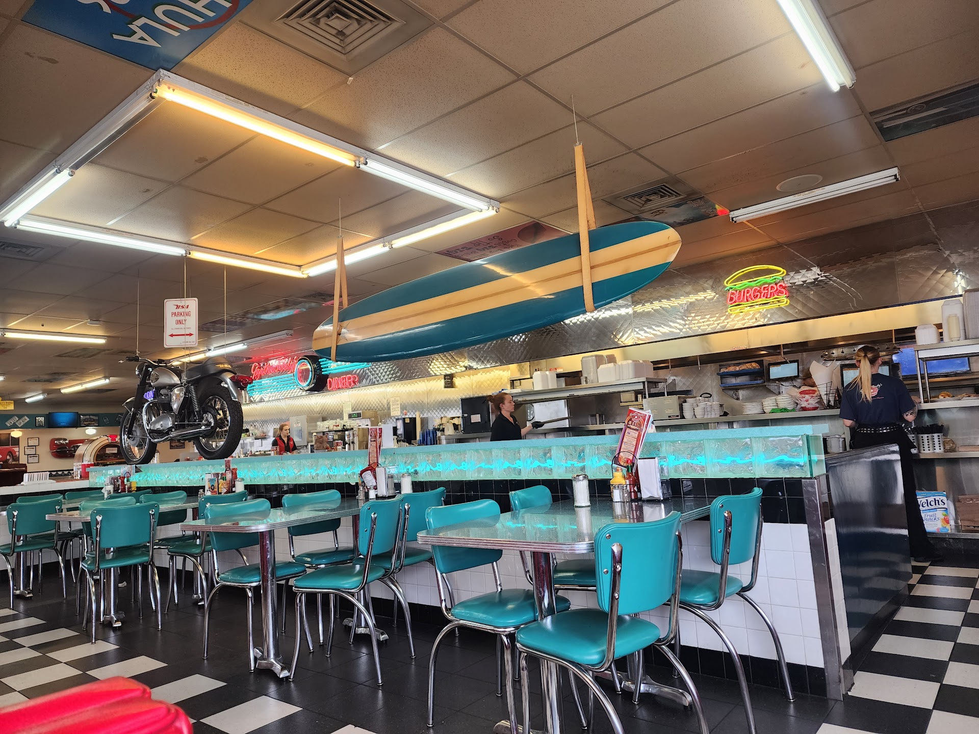 I'm in my mid-thirties and I can recall fun memories of this restaurant concept (I'd never eaten at this specific one, but the one on 104th). This restaurant has plenty of parking and the food we had was great! We tried the fries and funnel cake fries, both warm and cooked to perfection. I deducted a star due to the service. It wasn't bad necessarily just less than what I had expected from this restaurant based on my past visits to the other Gunther Toody's. I ordered online with a platform called "toast" which was the order app that was on their website along with their menu. I ordered 40 minutes prior to close and selected curbside delivery & entered in my cars make and model for identification. We were the only car in the parking lot directly in front of the building. We sat there until approximately 8:50 pm waiting for the curbside delivery (they close at 9 pm) as time crept closer to closing I decided to go in to get the food. That's not a big deal, but don't have it be an option on your ordering site if the service is not going to be provided. I stood there for a few minutes and I saw 3 waitresses, two tables of guests however I didn't get acknowledged for several minutes and my order was just sitting there on the counter. I finally walked further back to the sit down bar area and on waiters finally acknowledge me and had me sign for my order. I mentioned that it was curbside and that we have been waiting for 30+ minutes and she apologized but in a way that made me believe she had no idea that was a service being offered? Who knows what happened I mean honestly me having to walk is not a big deal, but don't put something on an order site and have your customers expect something is going to happen and it not. There were no napkins in the bag, so I requested some before leaving. When I ordered the funnel cake fries I requested they put on whip cream however they had put the whip cream in these little to go dipping sauce containers which I thought was strange & wondered why they didn't put it directly on the fries, maybe because it was to-go? Who knows, but it was kind of silly and wasteful for two plastics sauce containers to have whipped cream in them, both of which were runny by the time we got it to the car. All in all the food was actually really good: the funnel cake fries are amazing and we will get them again. They came with icing which was delicious and the texture was just perfect so they nailed the food. The service just wasn't there and the gals don't dress in the 40s and 50s costumes that they used to, they're just wearing plain street clothes so it kind of lost its luster for me to be honest so definitely not what it used to be and that's kind of disappointing but the food we...