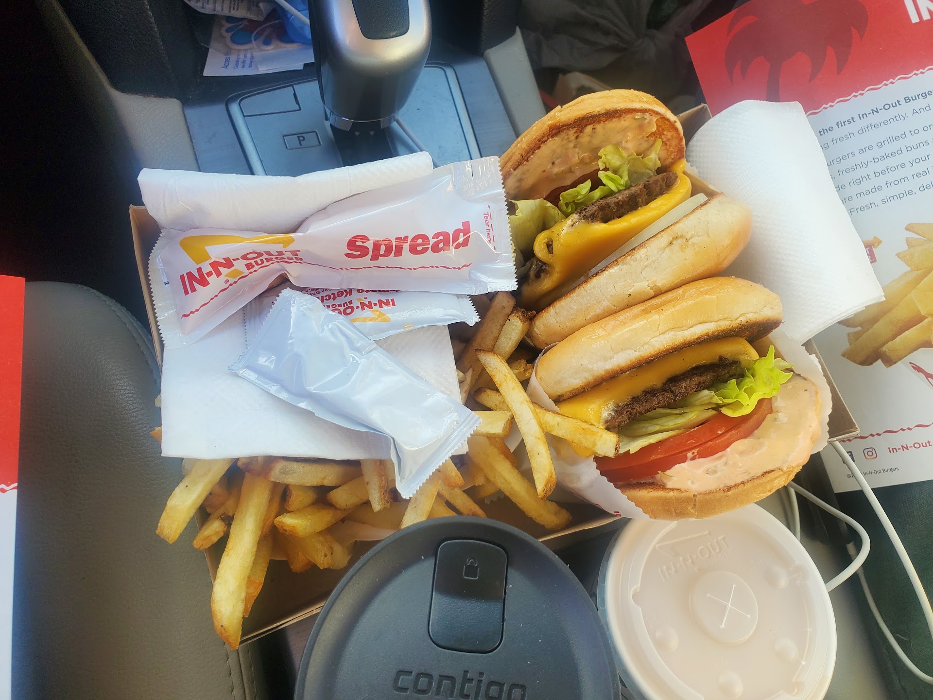 Read moreTake this as 4.5 stars. We came by as first timers on a Friday evening, and were at first scared away by the massive drive thru line. We ended up finding our way into the parking lot to order inside, and it turned out to be pretty painless. It took probably 15mins or so from stepping into the store to leaving with our food, and taking in the unique vibes and friendly workers made it go by pretty fast. In a world where fast food is becoming more expensive and worse in quality, In-N-Out is a much appreciated outlier for me. The cheeseburger was probably the best fast food burger I've had. The shake wasn't the best shake I've had, but for the price it really can't be beat. The one downside, which is why I dock 1/2 a star, was the fries. They just weren't crispy. I'll give them the benefit of the doubt and say that they normally are, and maybe I took a bit long to eat them or something, but until I see this for myself I'll have to keep it at 4.5/5