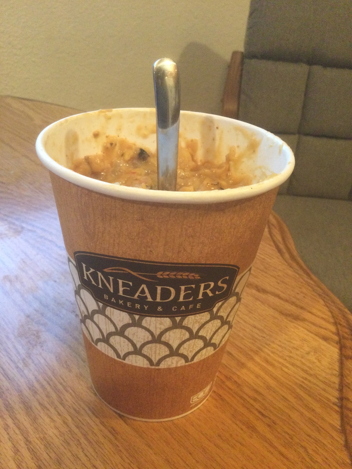 If “zero” stars were an option, that would be my choice. I stopped here on my way home. Decided to go in. Two associates were at the door with a shopvac and a mop. The gentleman told me I could go “this way”. I told him I was fine, and walked straight ahead to the counter. Then as I am looking at the bread selection, the young lady steps in front of me. I didn’t say anything, and the gentleman proceeded to tell me “they have been trying to get this cleaned up all day”, and that is why he asked me to go around” (he didn’t ask me anything). I told him “If you do not want people to walk in, lock the door! “(if it were truly an emergency your customers would understand.) Needless to say, at this point I could not believe how rude he was. He then proceeds to tell me he was the manager, ( I didn’t ask). As I am now looking at the menu, he walks behind the register and asks to take my order. I order pay and leave. Never have I had a worse experience at a restaurant. And just to make this experience even better, this is what they call “soup”.Notice the spoon? Never ever again will they get my business.