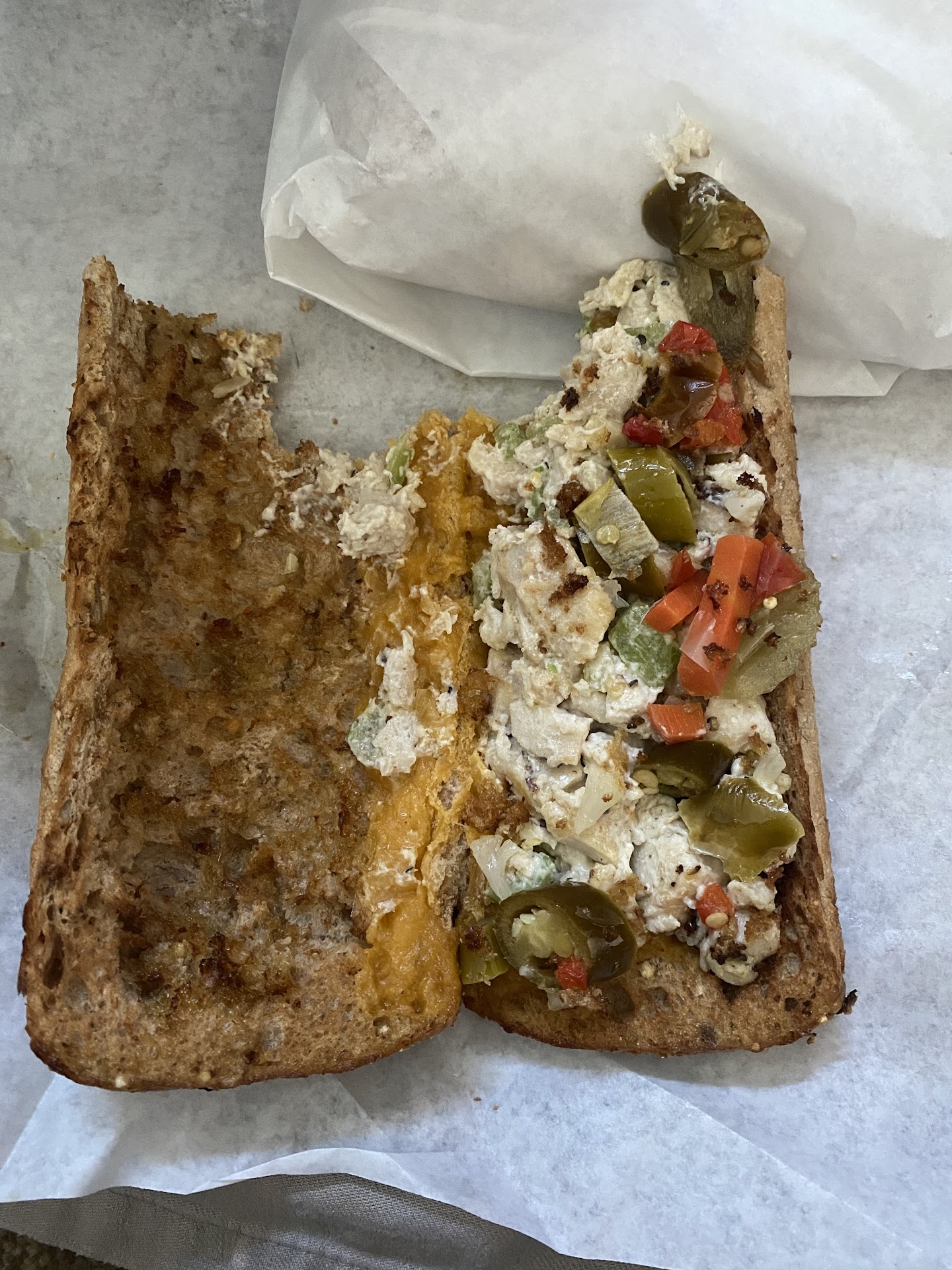 What started off good has gone downhill quickly. Tonight's meal. Two sandwiches, two bowls of soup. The soup was cold. One of the sandwiches was literally three components: Turkey, cheddar, bread. They forgot the cheese.