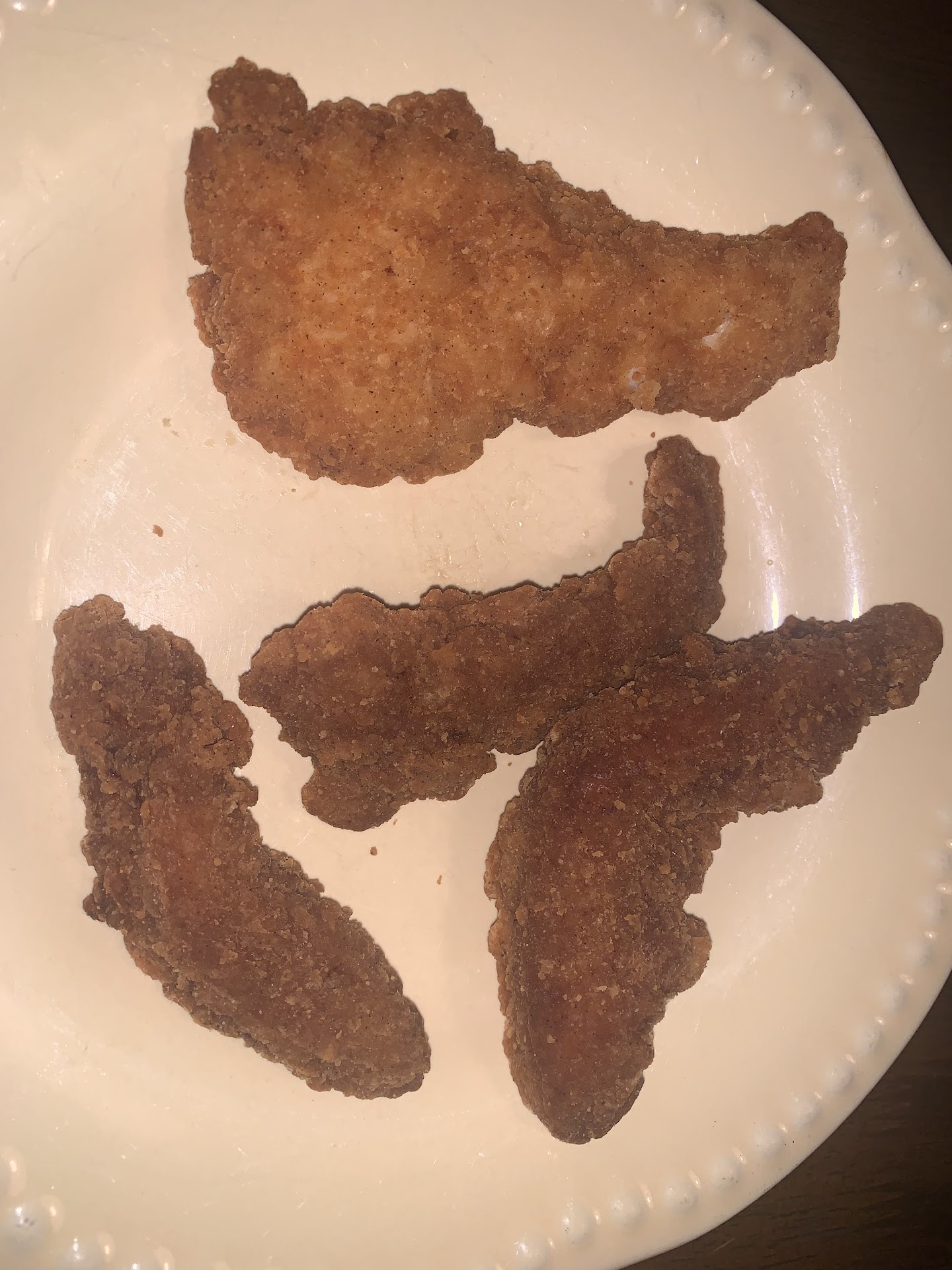 In my picture, you'll see one tender from the first tender order (the good one) and then the three shriveled, small, burnt tenders from the...