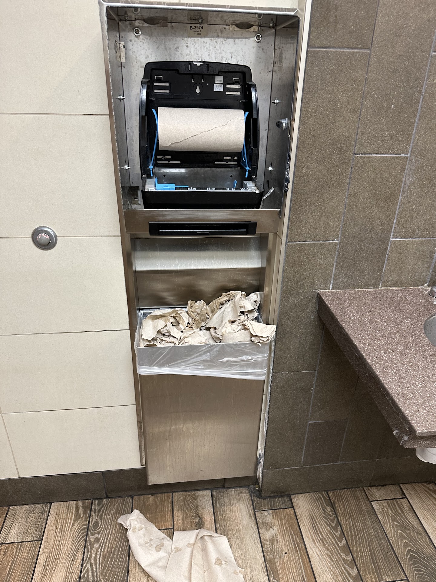 Read moreSo, let me start by saying, this isn’t an angry rant or anything, but it’s just important stuff worth mentioning. I went into Wendy’s today, and was very disappointed in the whole experience. The drive through had a few people in it, so I went into the dining area. It took quite a while to even be addressed, but when he addressed me, the cashier was polite. After I ordered, I got a huge cup for my kid’s meal, I’m guessing they were out of the regular cups. I go to put ice in the cup…no ice. I make 3 attempts for sodas, and they were not working, or poured plain soda water. It worked on the 4th choice. The trash in the dining area was overflowing, which gives a horrible impression. Including me, there were 4 people in the dining area, and the other people had been eating for a while. It wasn’t busy. When I went to use the bathroom, it was disgusting. The toilet had soaking wet toilet paper all over it. The urinal had what looked like black mold or mildew all over the top. The toilet paper dispenser was broken. The food took a while to come out, and was not up to Wendy’s usual standard. All things said, I seriously doubt I’ll be...