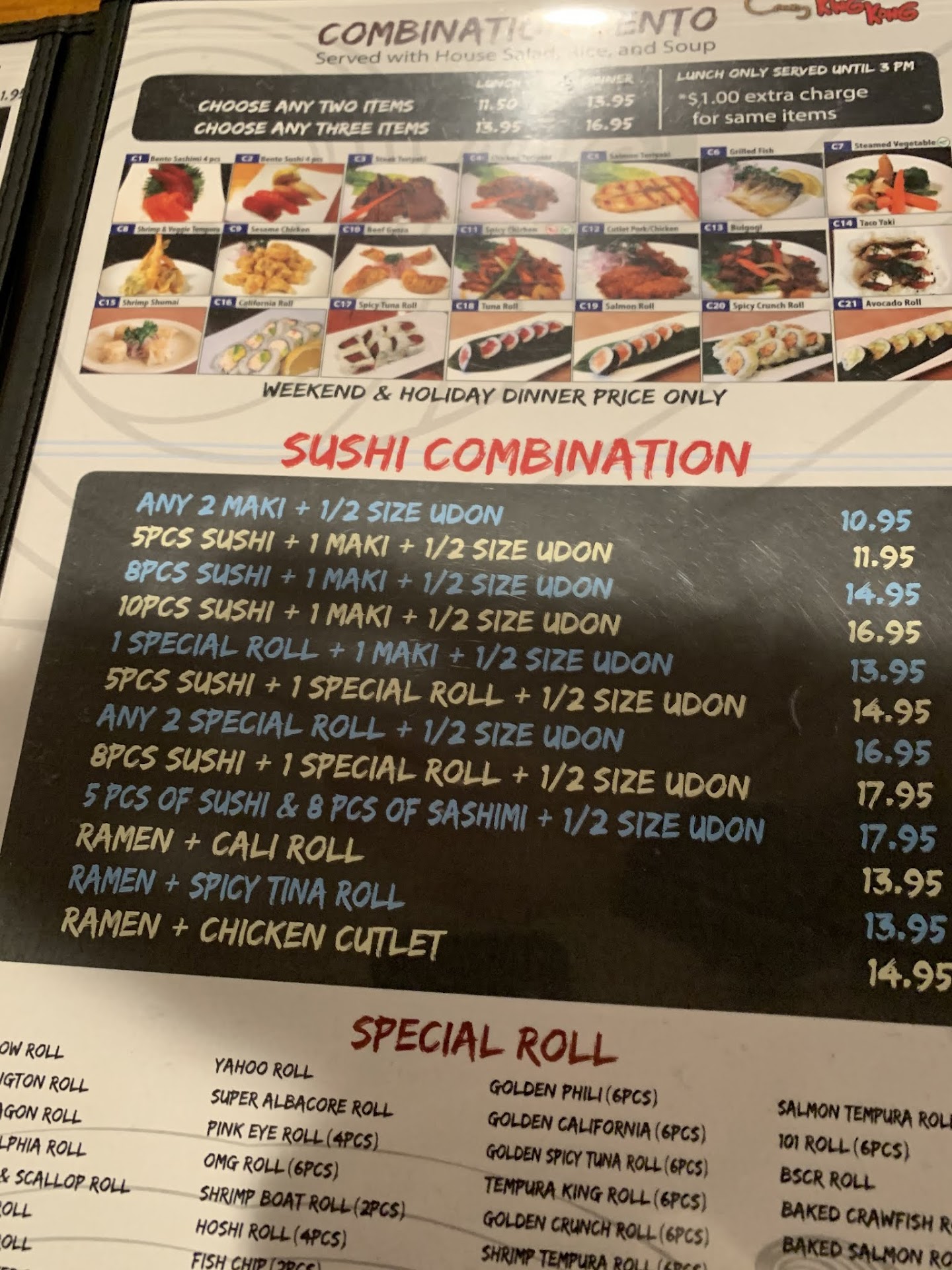 Our family of 4 ordered bento boxes and sushi rolls; total was $60 plus tip. All-you-caneat is $30. So this Crazy King Kong Sushi isn't crazy expensive.