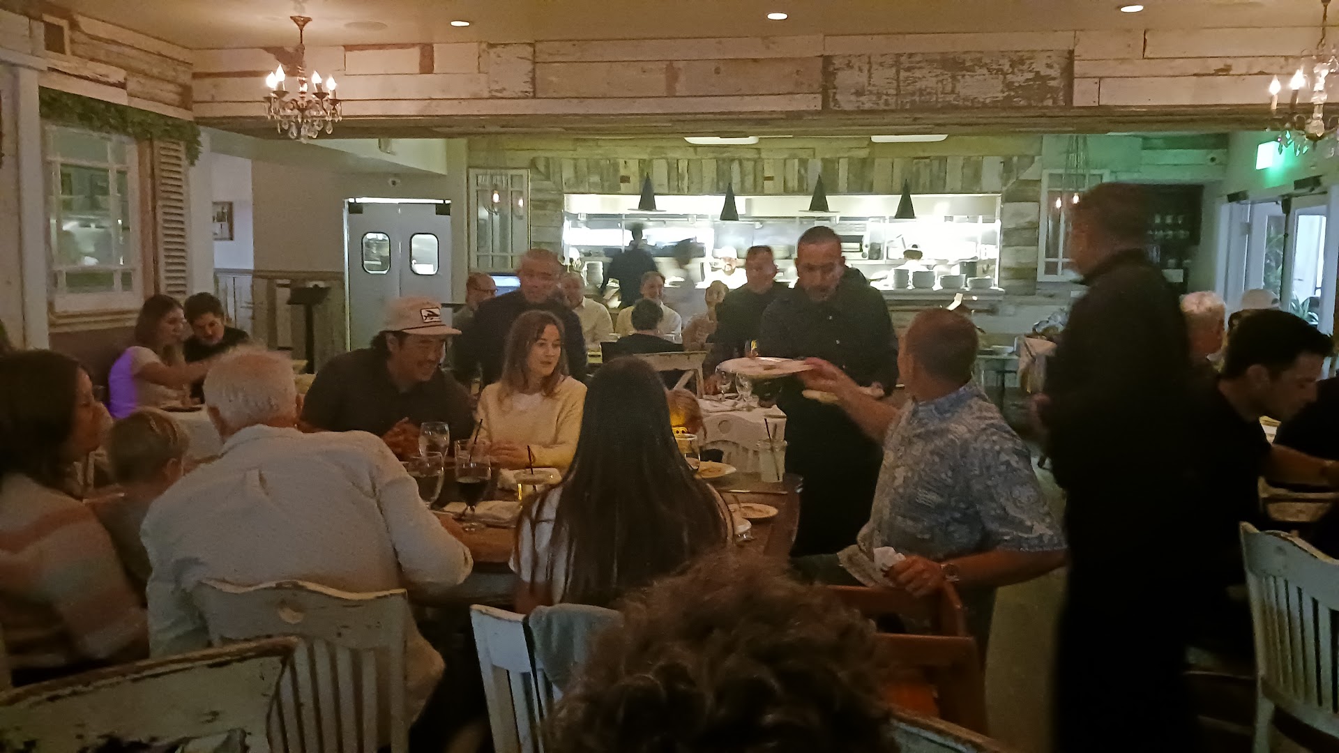 Ambiance inside? Horrendous. The ceiling is too low, the noise level is way too loud, and there's nothing to dampen the sound level from one corner of the room to the other. You can literally hear in detail what's going on 50 feet away at the table on the other side of the room. The lighting in here is another atrocity. We walked in the door 2 hours before sunset., and I couldn't even see the menu. I had to turn my flashlight on my cell phone. Farmhouse white walls? I feel like I'm going to a country bed and breakfast, get getting charged Four Seasons Hotel prices.