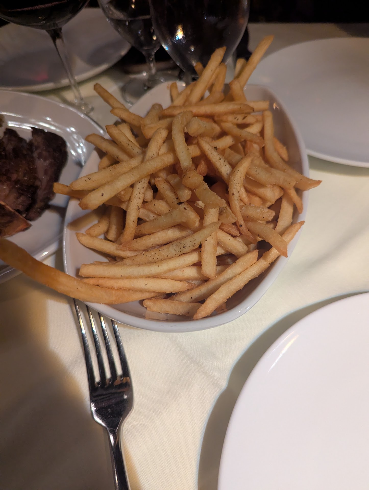 Food: we did family style; Australian Wagyu, Bone Marrow, French Fries, Mac 'n' Cheese. They also offered a complimentary dessert for the birthday boy! Everything was good; steak cooked medium rare. Mac 'n' Cheese had no flavor but everything else was good. Bone marrow with the bread was awesome. Fries good too.