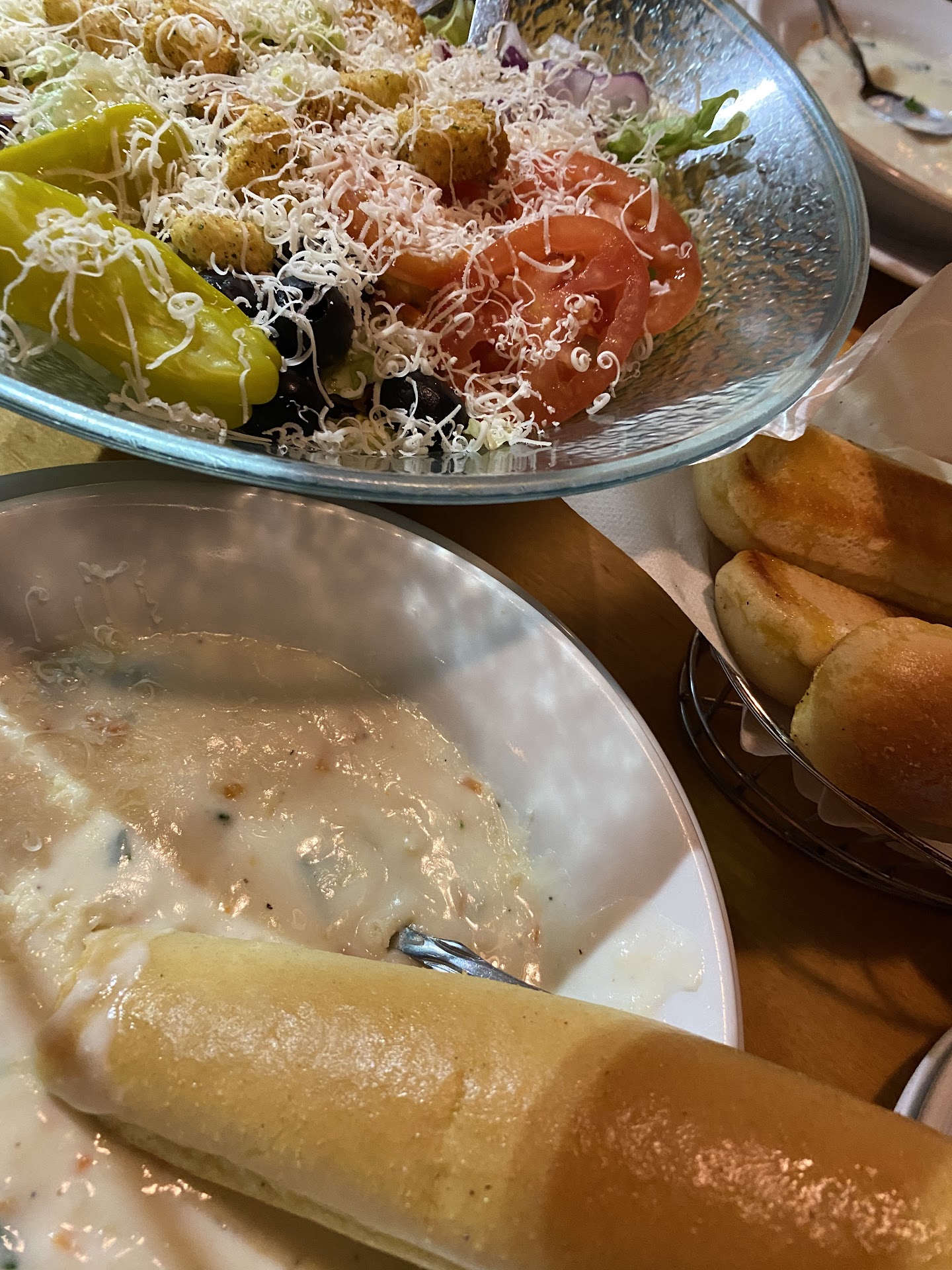 Read moreThe staff at this location should have already seen this coming after tonightâs visit. The tablet didnât give me the option to do a survey (which is weird) so I will leave my survey here. With well over 10 years in the restaurant industry this was the worst and most uncomfortable experience. The server started off good but I donât know what changed for to her just not caring and result to just dropping food and going without saying anything. Then it turned to her having excessive conversation with a table while we waited on entrees and refills. I had to get up and go to the back to see if my food was ready because her conversation was more important than her tables. We didnât get breadsticks until after our soup and salad. Looking at the other table near I saw a table full of appetizers but no bread so while our second order of bread was arriving this table near by was receiving entrees and still no bread. Us parties just glancing at each other to see who got what continued for a while. This was the most uncomfortable experience I wanted to give them our bread. The manager tried fixing both tables but it did not seem sincere but almost like this was a regular thing. With my restaurant experience I definitely would have taken disciplinary action on multiple team members and had them retrain for...