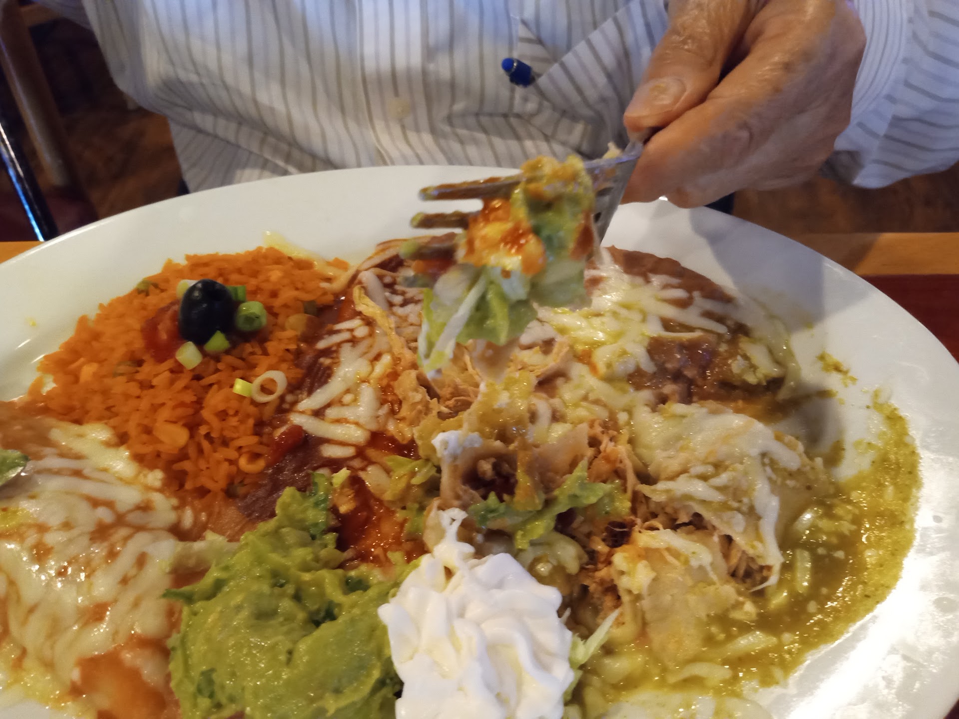 Read moreThis review is for take-out. The server was friendly and efficient. The portion was huge (see photo), and comes with soup and chips. I'm not a big eater, so for $14.95 I ended up with literally enough for 3 meals. To me that's a great value! They offer 3 enchilada sauces: tomatillo, Rojas & ranchero. I chose the ranchero sauce, which was delicious. It is the authentic 'orange' rather, than the thicker, tex-mexy red sauce that many places have. The cheese appears to be a Jack Cheese blend, so it is white and creamy. My only disappointment was the Guacamole, which was overly processed and too acidic. The salsa was excellent, and tasted very homemade to me. If you are looking for something "light" - like most "mex fresh" chains - this is NOT that. This is old school, full fat, food-coma Mexican food. Now excuse me while...