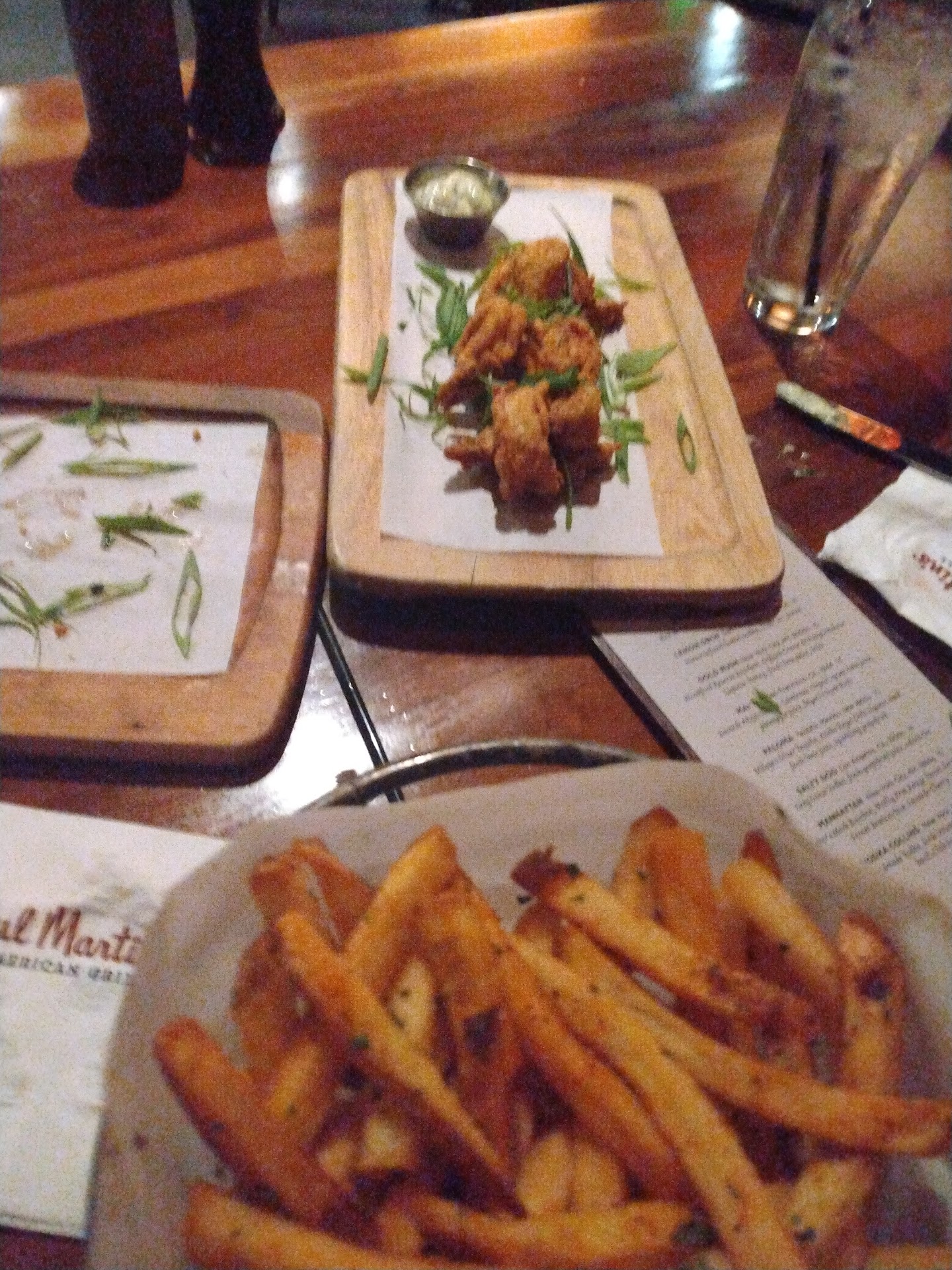 Let's get to the meat of it... First, the restaurant wasn't overwhelmed, front and back of house was at 70% and it looked like they had adequate staffing with food runners and servers in full display. Our server may have had 5 tables. When I arrived, it was still light out. This is always a problem for restaurants who have not given proper attention to the overall upkeep of the venue, furniture, etc. First thing I noticed was rips in the chairs at check in. There were other noticeable concerns like the menu had been written on in pen, But I digress...
