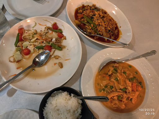 Read moreMaybe we ordered the wrong thing. The mixed appetizer with satay, shrimp roll and egg rolls was ok (I thought the satay tasted burned), but the "heavenly combo" fried rice was awful. The rice was still white ( completely white), the onions were sharp and the remaining vegetables were from a bag of frozen mixed vegetables! Tiny cubes of carrots. No fresh carrots?? We could barely find any chicken. Why cheap out on the chicken? We found a bug in our beer glass. I'm sure it was there before we wasted a bunch of beer. It wasn't a flying insect. We told the server and he brought another glass and just left it without a word. I told them it was my husband's birthday when we arrived. I guess they do nothing for birthdays. We won't go again. I expect fresh vegetables at a Thai restaurant. Unfortunately, I didn't get my phone out...