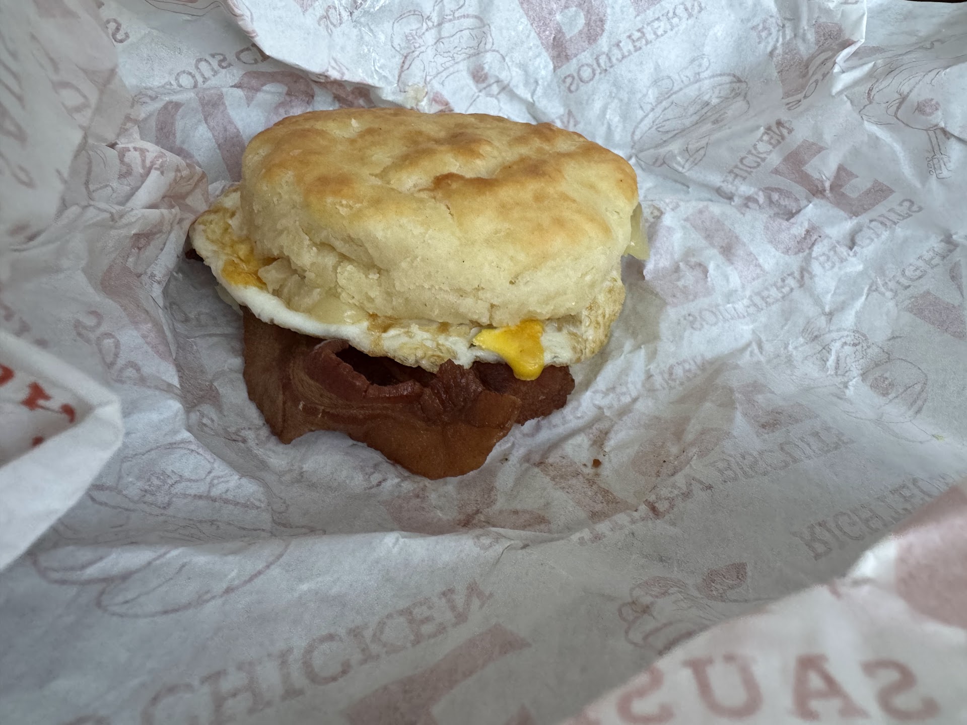 Read moreI saw a post about this on Instagram and knew I needed to try it. The place did not disappoint. I had the bacon, egg, and cheese biscuit, on the cheddar biscuit. While the bacon was a little more cooked than I like, the flavor of everything was spot on. I chose the runny egg and it was perfect. My side item was the cheese tots. They are extra large and so delicious. My husband ordered the chicken box with seasoned tots and a cheddar biscuit. The chicken was flavorful and moist and the tots were lightly seasoned and nice and crispy. If you are eating in, the fountain drink is an ok price. I belive they are cashless, as we ordered from a kiosk and there was no cash option for payment. So keep that in mind. I desperately want to try the cinnamon roll biscuit but we did not have room after the food. Overall, worth the price. The staff were very helpful and the food was made quickly. I look forward to coming back and trying...