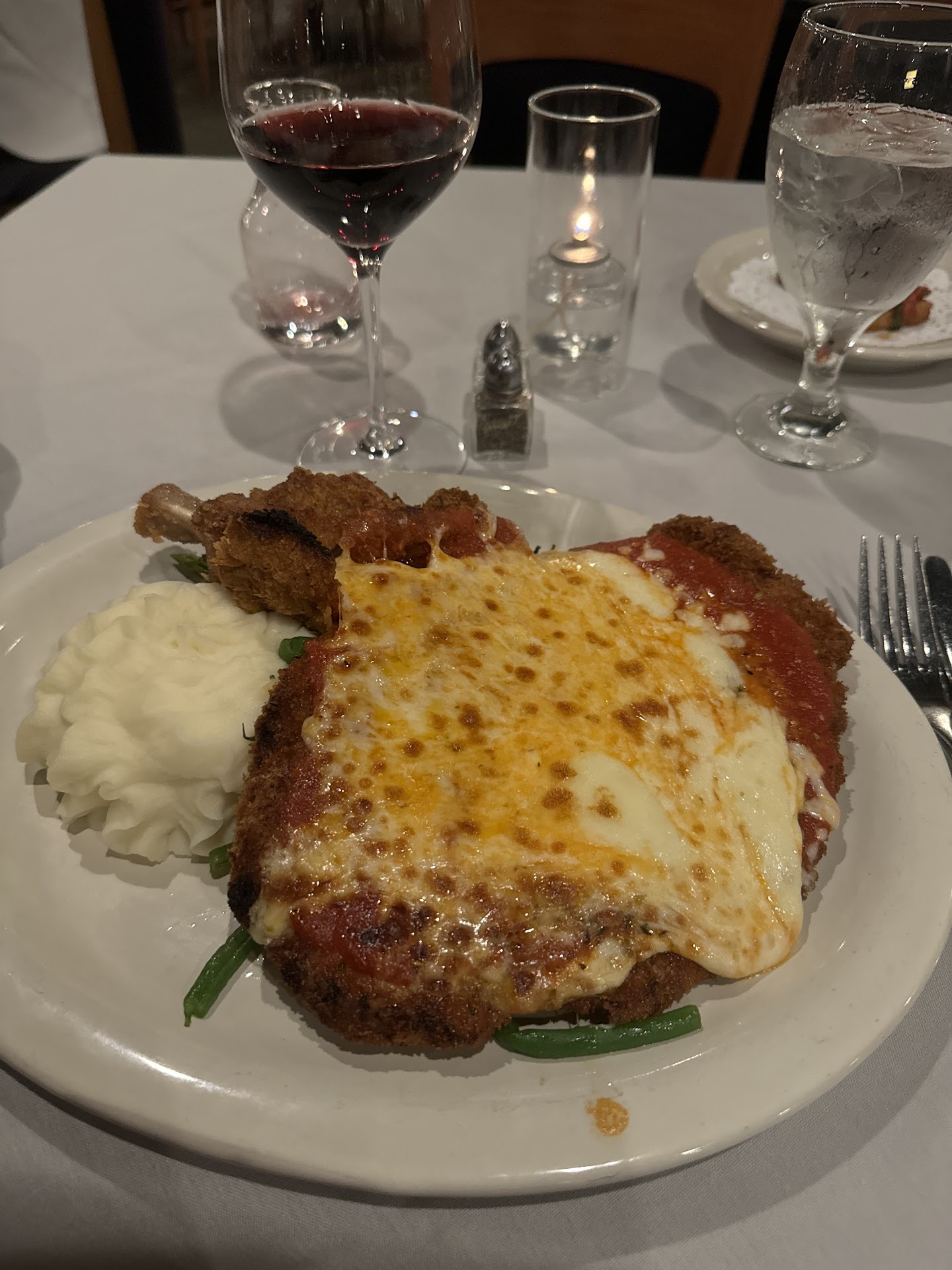 We ordered salad and shrimp cocktail - both delicious. My husband ordered the short ribs; full of flavor and fall-apart delectable, and I had the gnocchi, which was the best i've ever had - and I've eaten it in Italy! They were soft pillows of amazingness with a generous portion of meat sauce that was the perfect balance and depth of flavor that kept me eating way past when I should have. The portions on all the dishes were generous without be gluttonous. The couple we were with had the Branzino and the chicken parmesan; both of which they enjoyed as well.