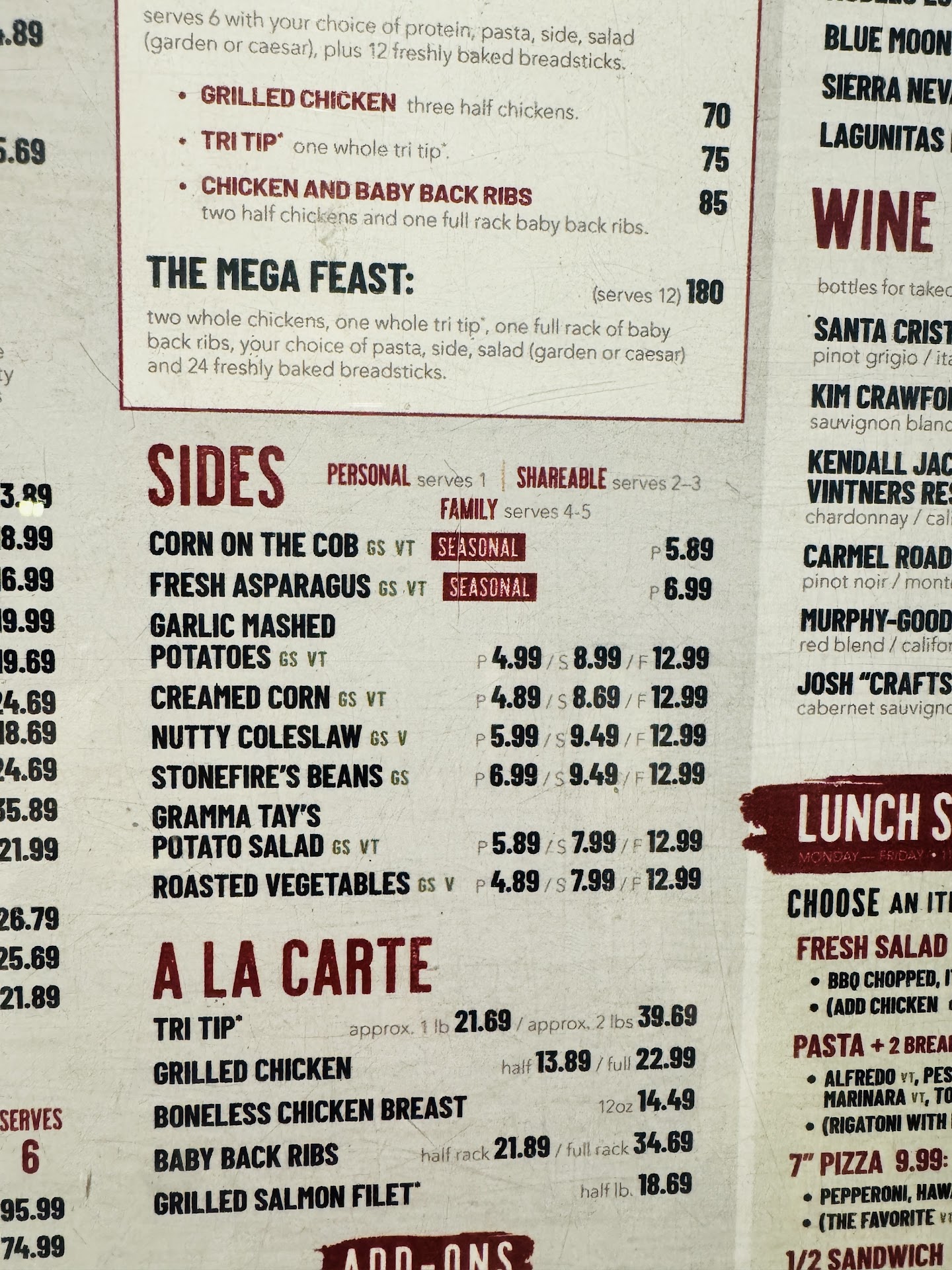 Today I had ordered through the app again and had my husband pick up the order. Same order (stimulus package) and my husband had requested additional BBQ sauce. This time, the person who brought out the order told my husband that he needed to check the bag when he asked for extra bbq sauce. He told him that he needed to look in the bag and so my husband did and said there was one, the employee finally said ok I'll get you one more. My husband ended up having to walk in since the guy did not come back with sauce and they made him pay for it! So ridiculous because when you dine in at stonefire, there is an unlimited amount of bbq sauce that you can take!