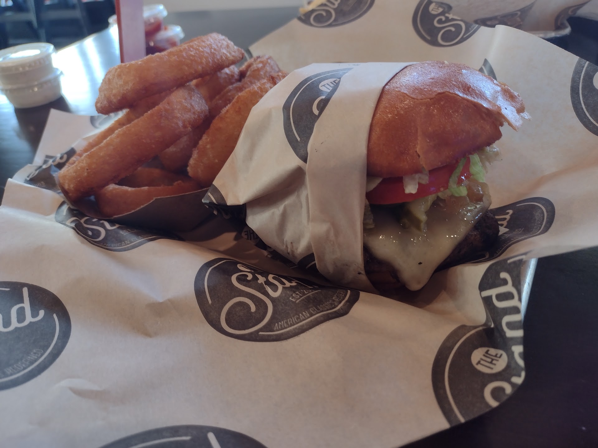 My wife and I both had the Stand burger. We got a large fries and a small onion rings.