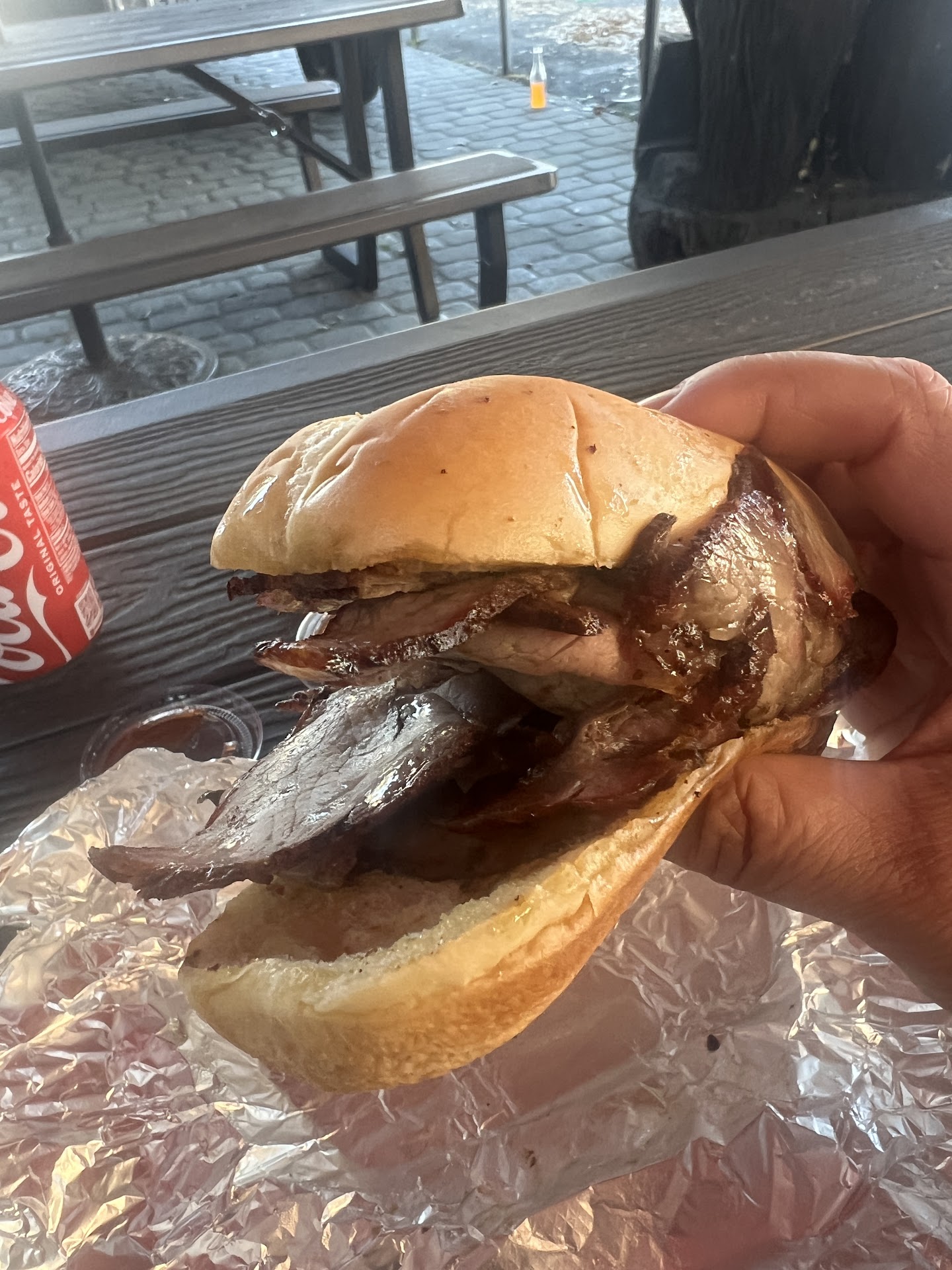 Read moreVery interesting place. Very basic, pretty dark, only sell various cuts of meat either on a sandwich or plain. A few sides are available, and a thorough condiment area with sauces, peppers, dressings, etc. There's an open fire grill near the front of the restaurant cooking several pieces of meat, which made it smell great. There's barely any seating inside, so I are at a picnic table outside, which had no lighting available. The food was reasonably good, not the best I've had though. Staff was friendly. The bathroom is down a very dark and dirty alleyway, with no lighting at night.