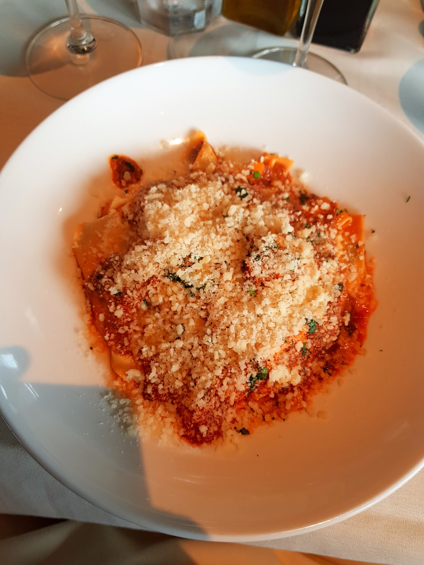 I had the spinach gnocchi with Kalamata olives, capers and shaved parm. My boyfriend had the eight hour beef ragù. Both dishes were outstanding. We had stellar service in the main dining room.