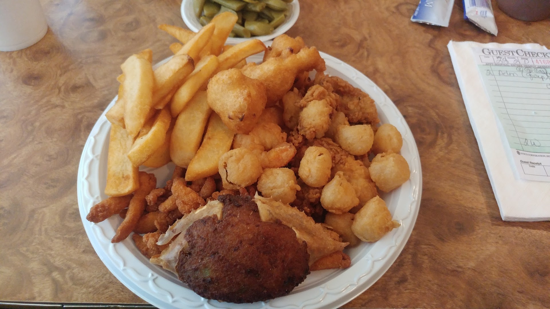 Read moreIn the nearly 12 years I have lived in this area I have heard several times about how good Charles Seafood is. My husband doesn't eat seafood, so I decided since he was out of town I would check it out, in spite of all of the bad reviews I had read. Unfortunately, every bad review I had read turned out to be accurate. I got the admirals platter, in order to have a sampling of different things. Everything was soggy, the scallops were so tough I couldn't bite through them, the oysters were literally mush, and I'm sorry but those oily lumps of fried dough are NOT hushpuppies. Not a bit of cornmeal anywhere to be found in them. The 3 shrimp they gave me were ok, but the catfish filets I asked for in place of mullet was so greasy that they nearly left a puddle. Pretty much the only good thing I ate was the shrimp, and the cole slaw. For the nearly 20$ price tag I could have had better seafood at Red Lobster. Needless to say, I won't be back. The waitress was very...