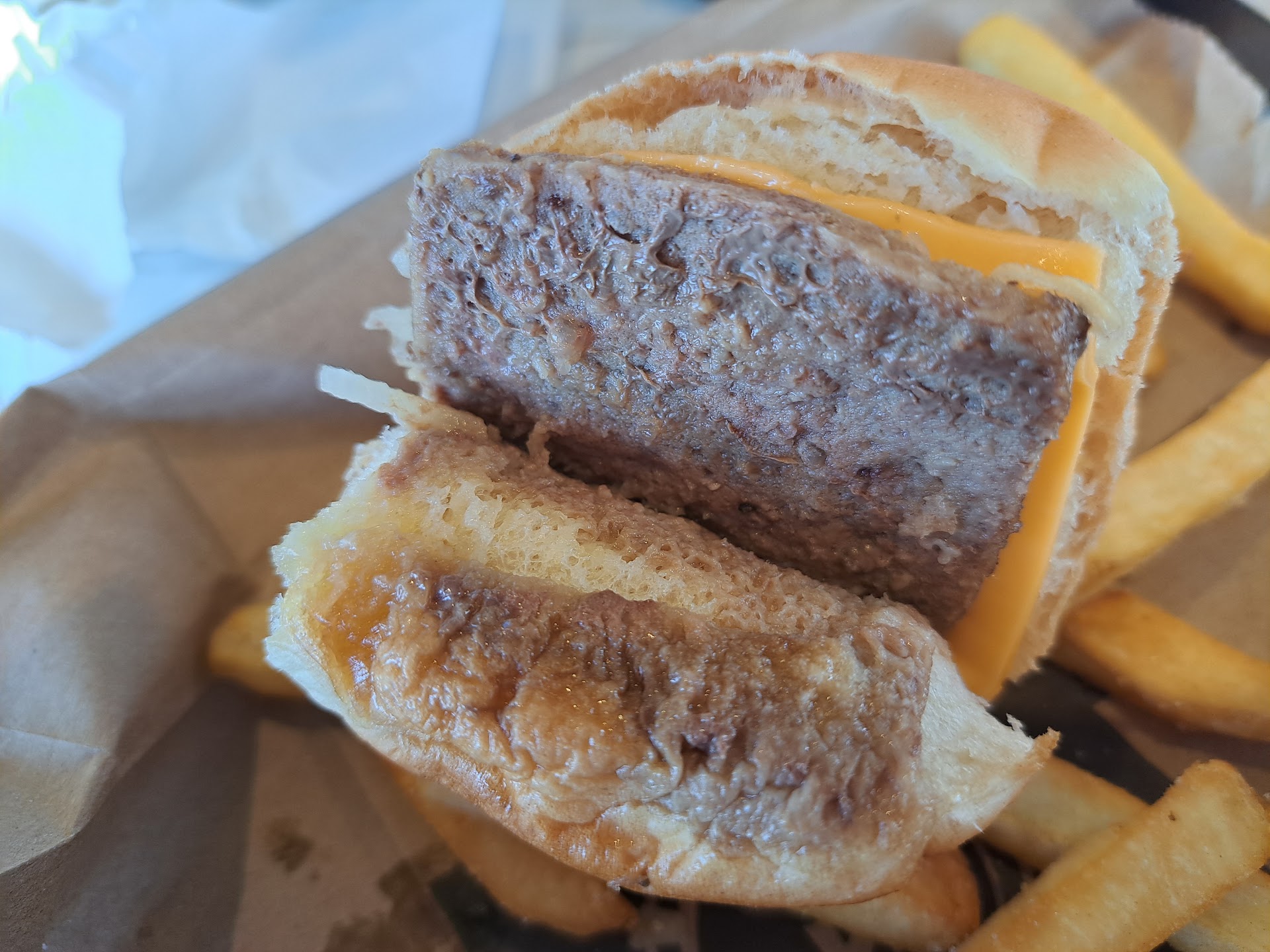 There are similarities with the thin burger, sauteed onions, and the slider bun. But that's about it.