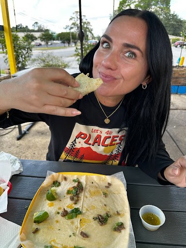 Dont let the little suspicious building scare you! This place is AMAZING. We were traveling through. We love trying small local restaurants and was not disappointed. We have 2 small kiddos with us. One who is VERY PICKY! He ate his cheese quesadilla with vigor and said it was the best he has ever had. I was shocked!! My other kiddo had a steak quesadilla, it was gone so fast i couldn't believe it! I had the quesadilla azteca. Im not normally a pork fan but i took a chance and was so pleasantly surprised. All the meat was sooooooo tender. Now the food was delicious but also the people running it were so kind! The cool even came out asked what we thought and even put our umbrella up for us at the table. 100%...