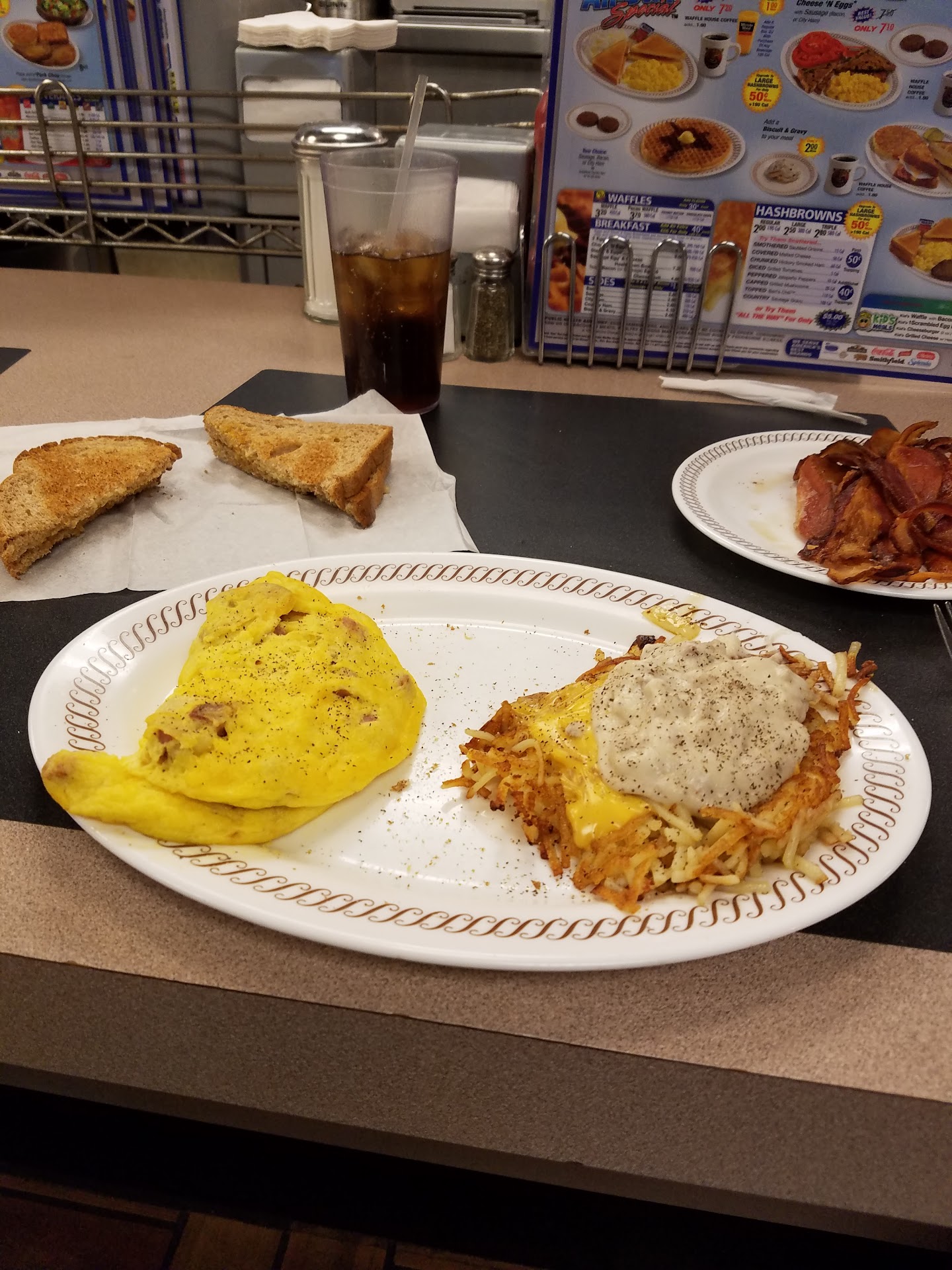 traveling N - I75, Tifton, Ga. Stopped for, sandwich. Only gas stations and a few fast food places. Nothing else around. Ordered a sandwich. Standard, simple. Heard cook confirm with only waitress. Only 3 people in dinner. Waitress was more concerned with cleaning than customer service. No interaction, not friendly. I'm surprised she got the order correct. I had to repeat it several times. Ham, cheese tomato, toasted wheat sandwich. It was obvious I was traveling. It is common to cheat travelers at many beside the highway places in the middle of no where as they know the traveler can't or is too far away to come back. The next exit was 15miles.. Cold white bread, egg cheese, sausage. Yes this is a small thing but it is the principle of the thing and the fact that Waffle House has zero way for a customer to contact them. There is no local phone #. No national/corporate #. Only 1 VM with no option to leave a message or speak to a person, it automatically hangs up. No on line complaint form. A feed back form only. No way to get your money back. Complete disregard for customers. Set up to cheat customers no matter the problem- large or small., Set up to steal. Any WH anywhere can cheat you with no way to have your order corrected or get a refund. This is not the business you think it is. There may be a decent location here and there with professional employees but not likely. The 3 employees there- 1 waitress and 2 cooks. None of them looked at customers or had the slightest interest. The place wasn't too clean. If there had been another dinner around I would have left. That is what they count on- no other...