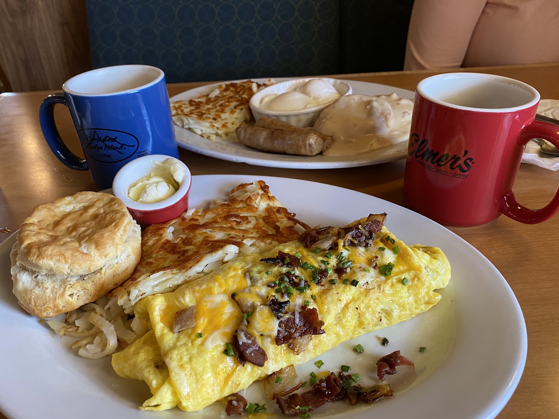 Read moreMy lady and I stopped here, Elmer's, after attending an event in Portland. I hadn't been to a Elmer's in 30 years and thought that it was time for revisiting. Well, boy was I very disappointed and felt not happy about the experience. I ordered the Fish & Chips w/a cup of chowder. I've worked in restaurants and once owned a BBQ and I know food. When the chowder came you could tell that it wasn't well maintained and had been in the steam heater or soup warmer way to long. It was so thick that the soup spoon was able to stand straight up on its own as if stuck in paste. I sent it back needless to say. I was hoping that the fish & chips would be better however the fish was nothing special either. I come from San Francisco where fish & chips are good but having live on the Oregon coast where both Fish & Chips and Chowder are a Thing Elmer's was a major let down. The fish was overcooked to not golden but burnt brown and the fries were just out of the freezer nothing more. The coleslaw was standard with a serving size of a quarter cup if that. My lady ordered the Avocado Burger which she said wasn't to bad but the bacon on it had a flavor that she took it off the burger. I was curious about how it tasted because how can bacon be bad? Well, the flavor wasn't to our liking and I really think it was perhaps on the warming station to long and tainted the taste. The best part of our experience was our waitress. I give this place 1 star and I cannot recommend for anyone to eat here. Perhaps a different store/restaurant would be better but not the one on HWY 99...