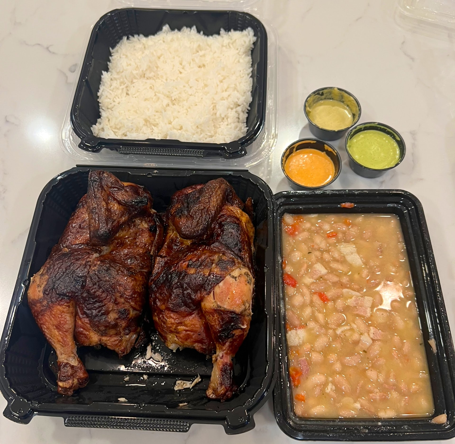 The chicken dinner is an exceptional value at $26 and you can pick 2 of 4 side items: beans, rice, salad, fries.