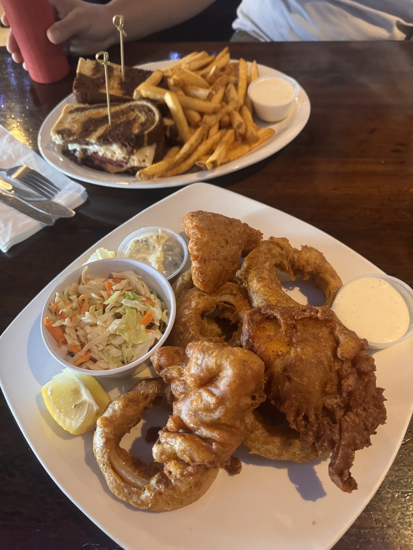 Read moreFirst time trying food dining in. We usually just head to the bar for beers and take our wings to go. But this time we stopped in for lunch. Chris always delivers exceptional service even when he’s clearly slammed with orders. Food was pretty good. I got the fish and onion rings instead of fries. Fish was fried crispy and orings were huge. Both were a little too greasy. I honestly wouldn’t order that again but i enjoyed it for the most part. Hubby got the Reuben and fries. I tasted it and it was a great Reuben. Service was slower then when we sit at the bar but business was steady so i understand. I’ve seen most of the bartenders and you can tell they care when they make a drink. Their restrooms are always kept very clean and music playing was tasteful. Lots of parking available. Easy location to find and they have what we like to drink. Also recommend...