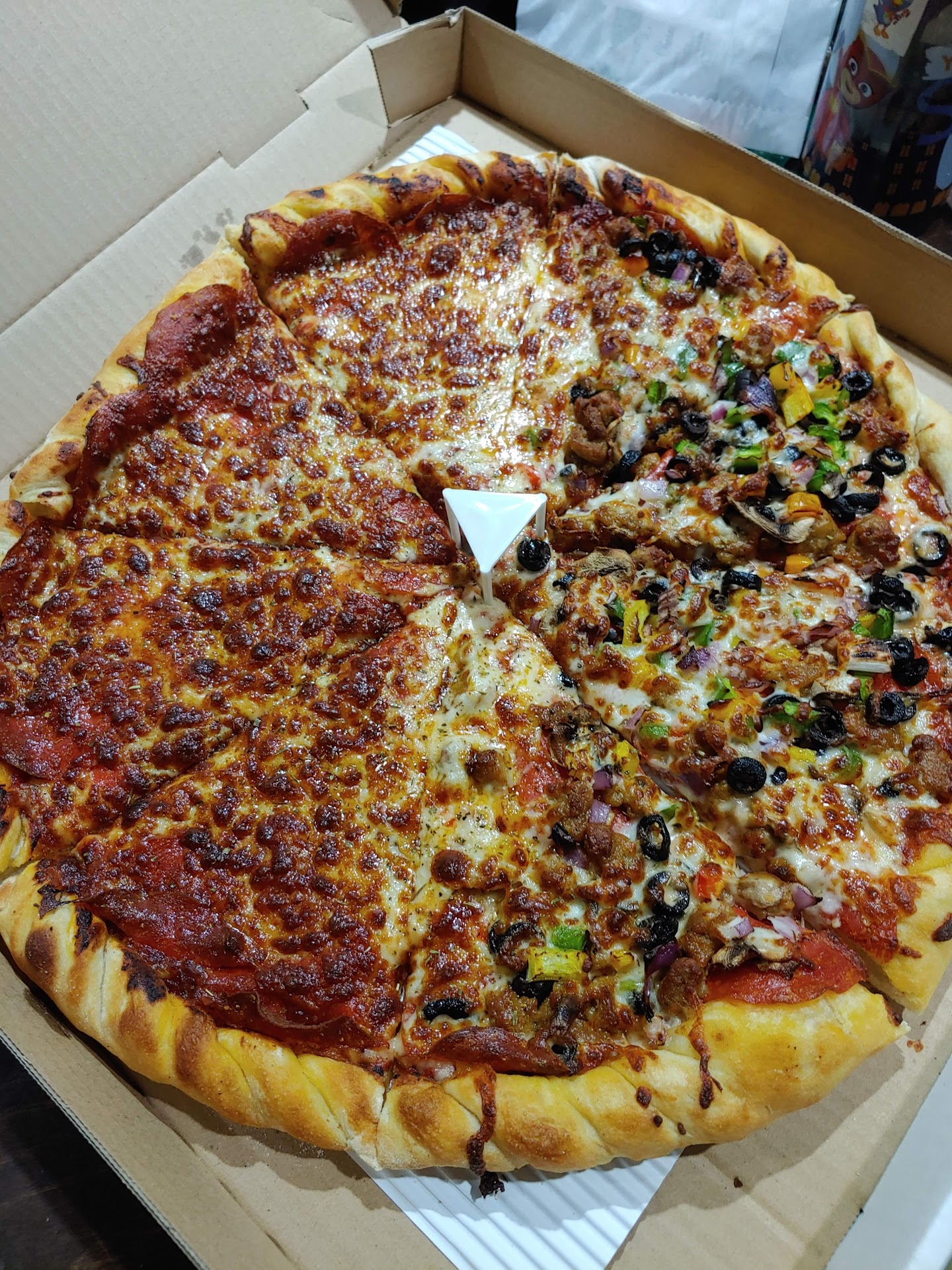 Read moreThis was my First time eating pizza from here and my friend took me there and He went in and Ordered while I waited out in the car with the dog. It was the first time He had gotten me food and I had only mentioned a few hours/days before what type of pizza I really enjoyed. He told me they were more like New York Style slices which was not what my slice seemed like to me they were closer to Chicago Style Pizza with the Thicker crust almost deep dish that could easily be stuffed with cheese. None the less he got me Pepperoni with Extra cheese on top of the Pepperoni with black olives which is one of my favorites. They definitely over did it on the extra cheese I could hardly see the meat or olives so that was a little over board but over all I would definitely go back maybe just do plain pepperoni or maybe add some sausage to it and a little...