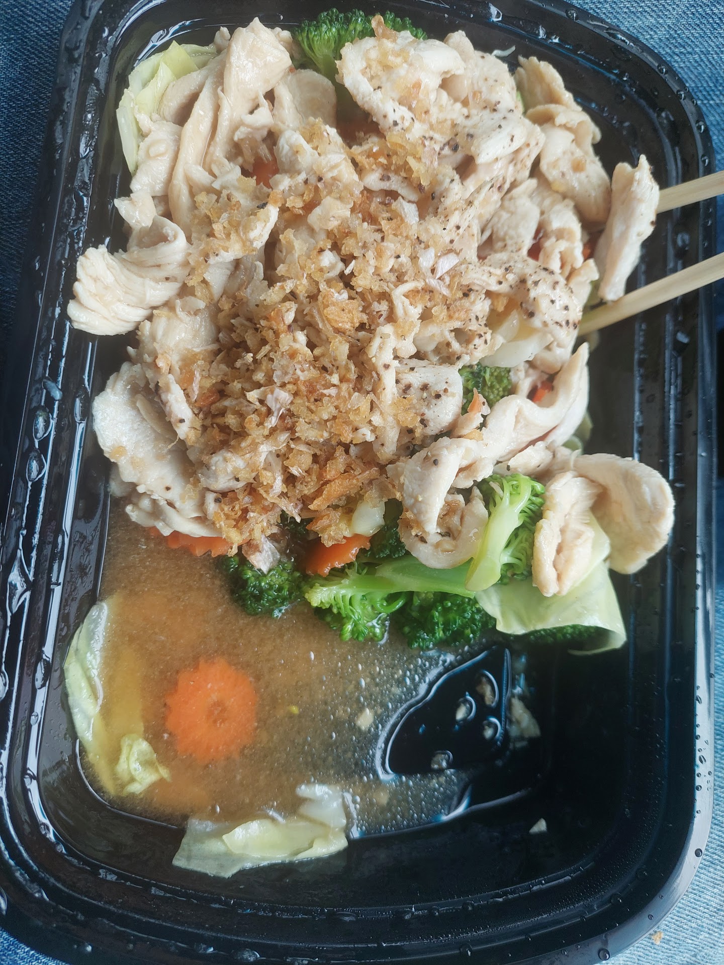 Update: I have since branched out slightly and gotten the Peanut curry with chicken and Pad See Ew, both so freaking delicious! The curry is a little spicy but I love it as is and the wide noodles and sauce on the Pad See Ew were also so very good. I think it's safe to say, most if not all the food will be delicious no matter what you get! They do...