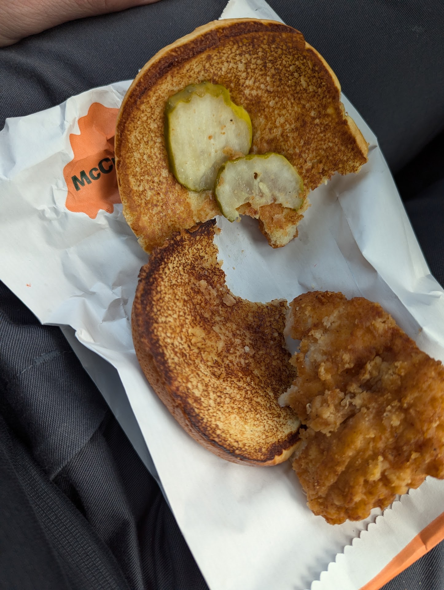 I ordered 2 mcchickens double cheese burger ice cream cone and 6 piece nugget. Around 830pm Wednesday evening in the drive thru with the mobile app.