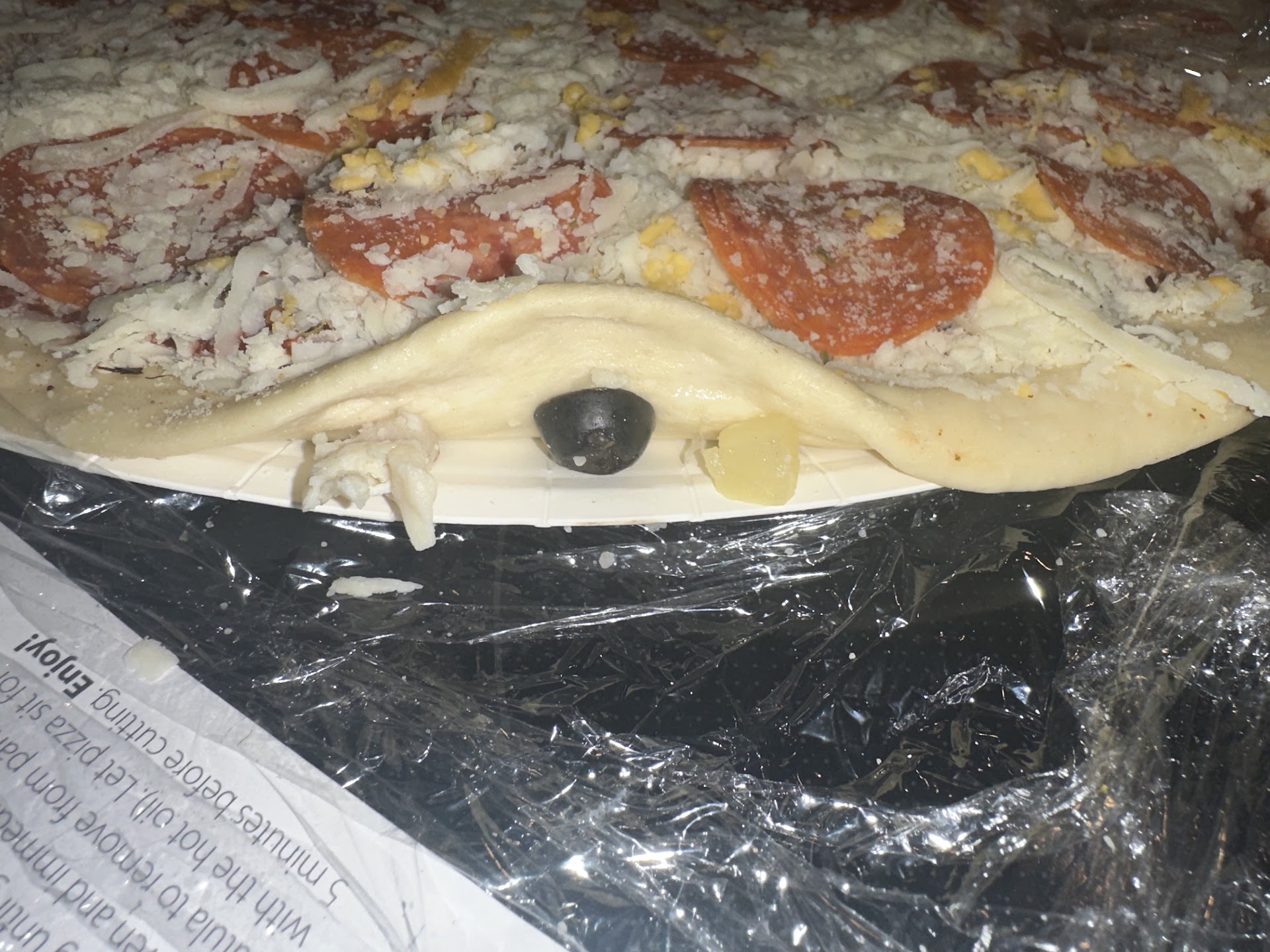 At first glance, the pizza looked great, but once cooked, it was apparent the quality was off. The meat, particularly the Canadian bacon, had an off-putting harsh smokey flavor/smell, almost like it was burned. Next, there seemed to be no presence of sauce. Furthermore, the "stuffed" part was deceptive as there was literally only a single layer of meat (as pictured).