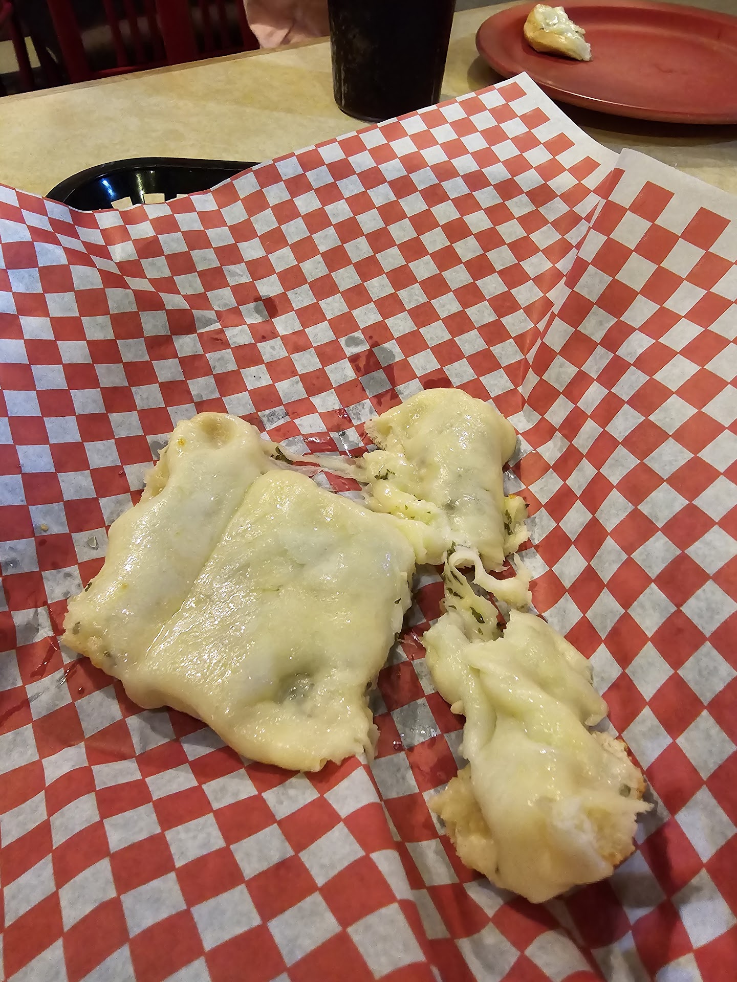Read moreIf you like good pizza this place probably isn't for you. We ordered a pepperoni and a Canadian bacon with pineapple. Both arrived as a medium dish and, at first reminded me a bit of old-school Pizza Hut (as did the the plates and general vibe of the place). Unfortunately, the pizza was very average--maybe even below average. The crust was golden brown on the bottom and had some crunch, but seemed overcooked. I'm usually one to enjoy eating my pizza crust and I skipped these. Too dry. There were plenty of pepperoni on the pizza but with too much mozzarella. We also ordered a cheese bread, which was flat out gross. I'm nearly certain it was microwaved, as the bread was doughy soft and the cheese an overly melted mess. The marinara that came with it arrived on a prepacked plastic container, indicating to me that there is likely nothing special about the in-house sauces being used. Over all, the pizza reminded me of something overpriced and likely to be found at a low-bar amusement park. We ate at lunch time on a Sunday and we're one of two parties in the place. There were plenty of employees though, so maybe their delivery game is strong.