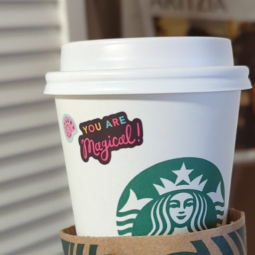 Friendly staff, consistent drinks, then seeing the home goods as you continue into Target. It's a vibe when your soul is warmed by that sweet, sweet espresso drink while looking at warm neutral ceramics and pillows. They got a whiteboard showing a cute poll (did Ross and Rachel go on a break, Y/N?) and a sign displaying their Barista of the Month along with suggested drinks. Adorbs. Came home and saw something peeking from underneath the cup wrap - the personal touches...