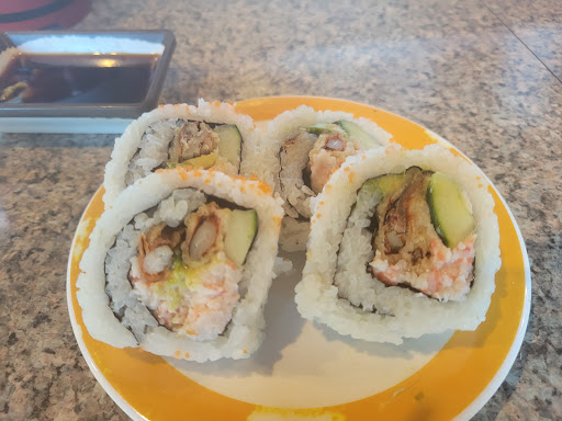 The place was busy when I arrived. No seats available at the "track" so I sat in the booth. I got harassed a little because I was by myself, taking up a whole booth. But I wasn't going to sit elbow-to-elbow with other people right next to me. So there was no choice but the booth. They probably need to learn not to harass good paying customers. Aside from that, there were several things that bothered me. First, every 4th plate was sliced up pieces of watermelon. Not sure why there was watermelon in early March but whatever. The problem is that it looks almost exactly like slices of Tuna. Only AFTER you've pulled it off the belt do you realize that you're going to be eating FRUIT and not sushi. In general, there was WAY too much fruit on the track anyway. Blueberries, strawberries, Melons, and more. I came to eat Sushi and I don't mind having some fruit available too. But there was way too much Fruit and not enough Sushi. They had no Tuna on the entire track. So I had to ask for that. Which, in my opinion, is pathetic. That should always be out and available at a sushi place. No smoked salmon either. When I did ask for smoked salmon, I was provided with a plate of CHOPPED UP smoked salmon. Not quite how I usually get it at other places, but it did taste pretty good. I just don't like it all chopped up. It made it look like dog food. The tamago (egg omelet) was WAY too sweet. And I questioned if it was made there or came from a box. Because it looked manufactured, not made from scratch. And didn't taste much better either. Service was non existent. I would have taken another soda pop. But nobody ever came around to ask me if I wanted another. I would have liked to get a check. But after 5 minutes of waiting for someone to stop by and ask if I needed a check, I finally just walked away from my table, up to the counter. No service at all. Overall, not real impressed. But it was cheap. So I guess if you're looking for cheap - this...