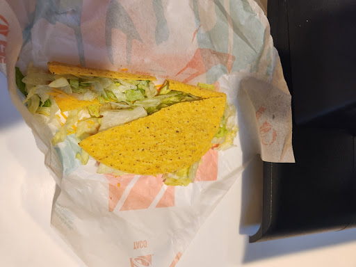 I donât usually go to this location, but made a poor choice that I wonât be repeating! I ordered what I usually order at any Taco Bell location, and what I usually scarf down gleefully without much concern of how it looks⌠however, itâs never been completely inedibly disgusting like this! The âcrunchyâ taco was so soggy that it was no longer crunchy and the tortilla was wet and floppy and had glued itself to the paper wrapping, and even with careful attempt to peel: could not be removed, so it was impossible to eat anyway (I donât eat paper wrapping, typically - weird, I know!). But I thought⌠maybe the taco got ruined somehow, thatâs okay, I also ordered a bean & cheese burrito! So I go to unwrap that but it wasnât even wrapped ! It looked like someone had wadded the paper on top of it! And seeing the âburritoâ answered that whoever did it had no earthly idea how to roll a burrito! They tried to rip off part of the tortilla for some reason so it has the appearance like someone had already taken a bite from it⌠and it was folded like a weird piece of paper and already oozing out everywhere before I even touched it. Because it had oozed everywhere long before I unwrapped or touched it, the sauce ooze had hardened and congealed, making me really wonder how long ago this burrito was possibly made. Just so upset - I am super pregnant and all I wanted was some Taco Bell but instead I got robbed and Iâm still hungry and sad.