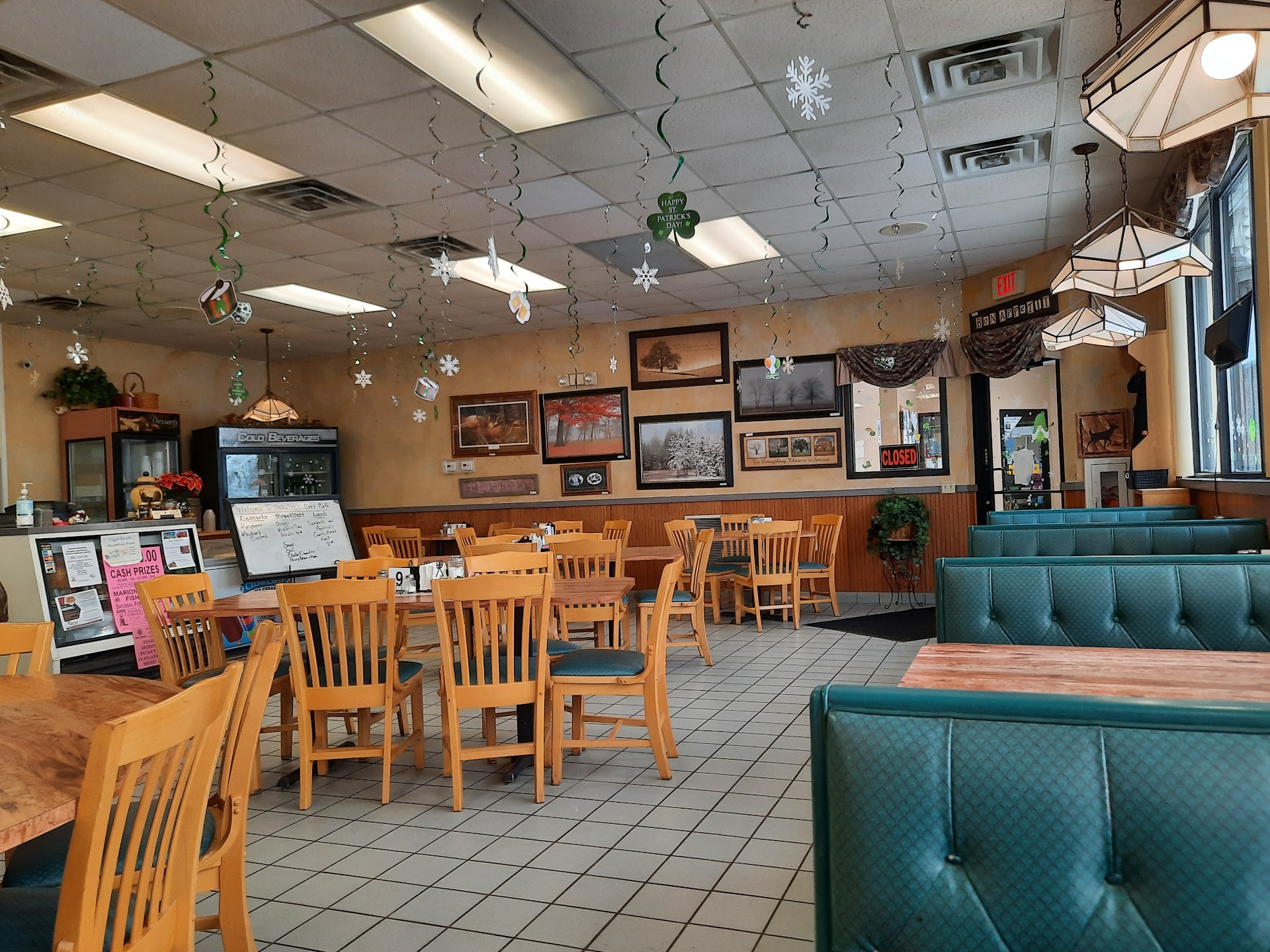 The Schultz's Cozy Cafe is a bit of a misnomer because the place is quite large and it has more of a truck stop atmosphere. It occupies half of a BP gas station building. The place is conveniently located right on Highway 45, so you can't miss it. The coffee is good, and we got plenty of it. The breakfast food is pretty standard fare, and you should expect to pay around $10 or more for a regular breakfast entre. The House Omelet for $14 was huge. They have daily lunch specials, burgers, etc., and feature fried chicken as well as Friday fish, but the place closes early at 2:00 pm on Saturday and Sunday. Monday through Friday they are open until 7:00 pm. I hear that pie is great, but we were too...