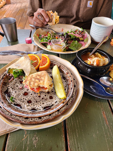 Roots Farm Cafe provides delicious, beautiful, and filling meals served in a rustic, homey atmosphere by a skilled and attentive staff! Our whole family demolished our lunches - not one crumb left on our plates! It was so beautiful we dove in before remembering to stop and take pics. We ordered and split a garden salad, a chicken panini, a veggie wrap, and the soup of the day: chicken dumpling. We have some dietary restrictions and the staff was very clear about the ingredients are in each dish, plus they proactively offered a myriad of substitutions for any problematic ingredients.