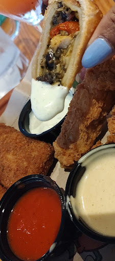 The experience: Lunchtime on a Monday. GF and I split the texas fries (bacon on side since she's pescatarian) + the quesadilla explosion salad, which usually comes with chicken - since she doesn't eat land meat, we had some back-and-forth with our waiter, Will, over what could be substituted. He mentioned salmon and shrimp, but when my gf asked about black beans, we were told it would be an upcharge. We said no thanks to the upcharged beans (for that reason) and settled on the salmon substitute. When the check came, there was an upcharge for the salmon, a surprise since from the aforementioned convo it was pretty clear we selected the salmon bc it was a substitution for the chicken, not a charge. Fortunately it was rectified as soon as we brought it to Will's attention.