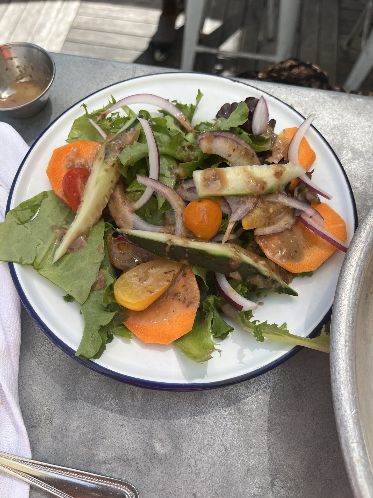 The bad: The service…. Im thinking the service changes depending on where you sit because I’ve only had someone who was nice serve me one time. The inside bartenders were so sweet. I normally sit outside when I come which is where I typically receive service that is not so friendly. I hesitated on making a review because I do love the food. I was there earlier in the week and Kellie served me on the patio. She had this weird energy to her where I felt like she was annoyed at me. I then realized she was upset because I sat myself on accident on the empty patio instead of asking a hostess to seat me outside. She had a very standoffish attitude towards me the entire time. I had to flag her down every time I needed something, such as a refill. I have great manners, so I would say “excuse me, may I….?” At one point when I needed something, and tried to politely get her attention, she turns around and says “Excuse me my name is Kellie if you need anything” while cutting me off mid sentence. She said this very rudely, as if we were on a first name basis. She said this, as if she introduced herself when she first came to the table… She did not.