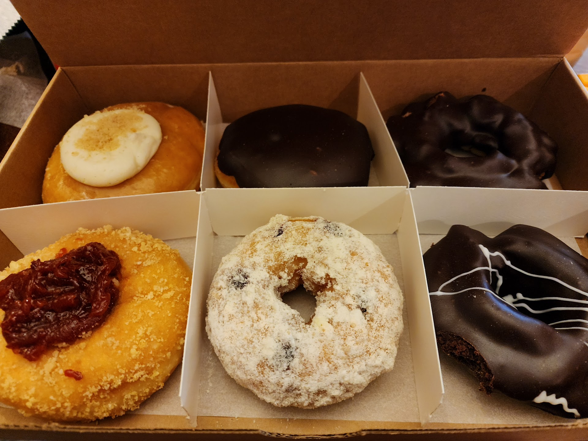 Do-Rite, and don't get the dealer's choice (cheaper ยฝ dozen) unless you're an old fashioned donut kinda person. I ended up with 5 donuts that no one was interested in. No one's fault but my own for wanting to save a few bucks. The 3-star rating is because the 1 donut we ate was ๐๐พ๐๐พ๐๐พ. I removed 2 ๐๐ because there should be signage and it should be clear what the buyer is receiving for $12. I am certain had I known is have 5 cake type donuts ๐ฉ, I would have dropped the...