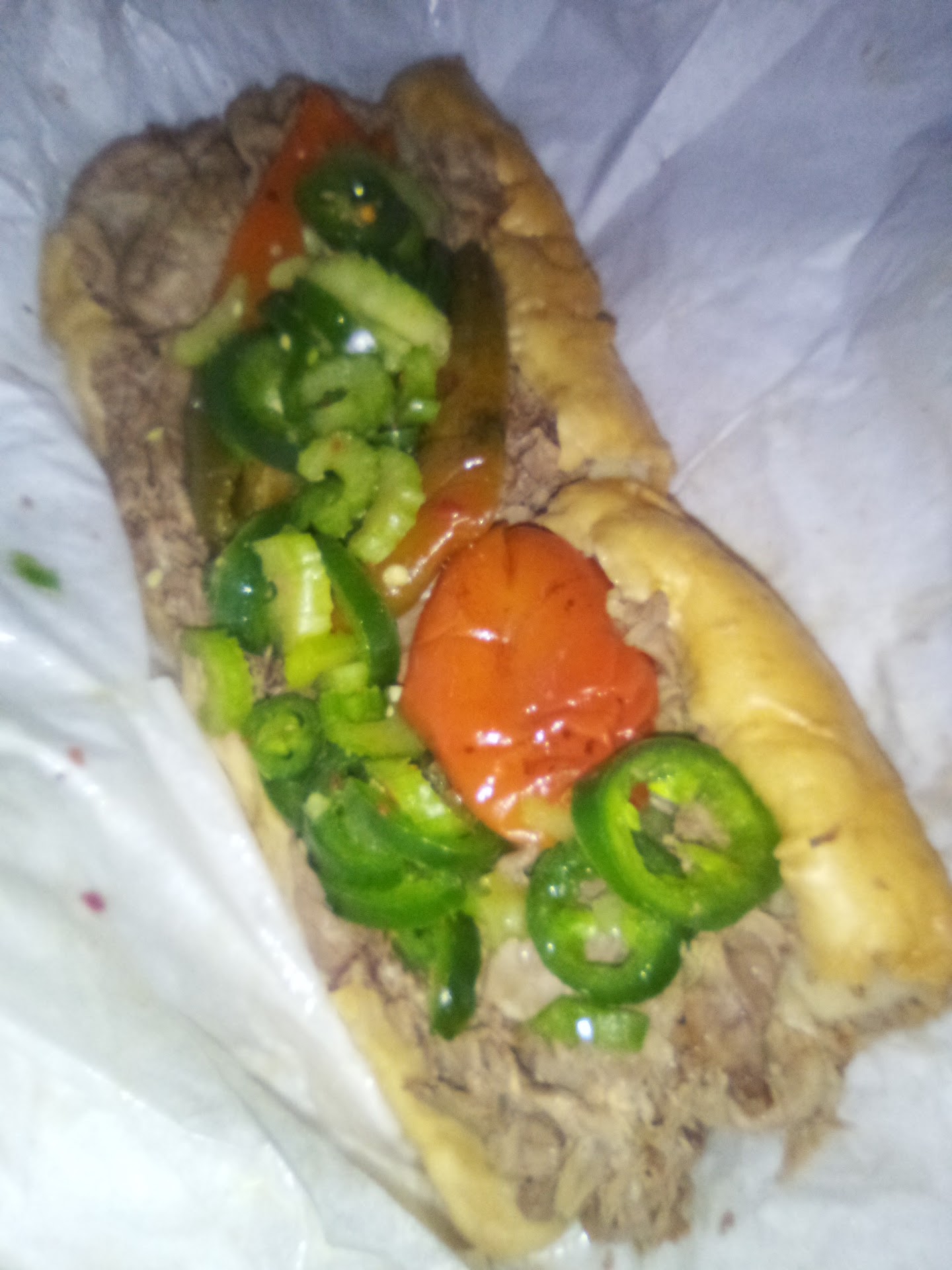 As for the beef, my standard order: Hot, sweet, and wet. First it was DRY and the beef was stringy with little or no taste. The Pops Giandinara had few jalapenos, mostly celery and was not hot at all. The franchise owner needs to review the video on Channel 9 to see how it's supposed to be made. This was not worth the upcharge for hot giard. As for the one small sliver of sweet pepper, enough said, Huge ripoff due to the upcharge for sweet.