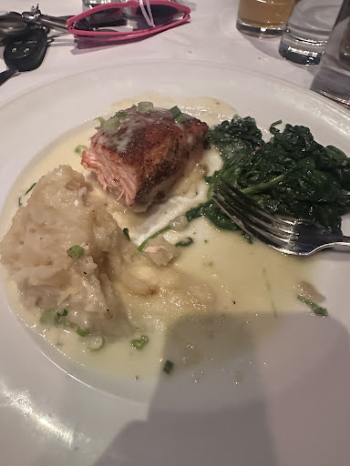 My friend and I decided to eat here on 11/12/2022 after not being able to get a table at our favorite restaurant down the street due to time constraints. Allowing ourselves 90 minutes for dinner, we entered at 5 p.m. and were immediately seated in a cozy bar area with only a few patrons seated. The main dining room was also sparsely seated. We were provided with menus immediately and a server appeared after 10 minutes. He was knowledgeable about the menu but had only 2 recommendations about what was good to eat, neither of which appealed to us. ( Our first choice was the fish and chips which he steered us away from stating they could occasionally be "off".) We each chose instead French onion soup ( which he endorsed ), Brussel sprouts ( which he also did not discourage and explained their prep in detail ), and open faced sliced flank steak sandwiches ( at $28.95 they should be a treat and take only 7 minures to cook for medium rare ). We also ordered cocktails which were immediately served. By 5:30 we received the Brussel sprouts and 1 generously sized bowl of soup with the cheese only partially melted. The server forgot to order the 2nd bowl but assured us it would appear shortly. We started on the sprouts which were presented nicely but were barely cooked in a flavorless balsamic vinaigrette which we doctored with the available table top salt and pepper. The sweet potatoes in the blend were perfectly cooked in contrast to the other overcooked diced bacon bits and rock hard barely cooked sprouts. By 5:50 we still had not received the 2nd soup which finally made its appearance 5 minutes later. The flavor of the soup was overwhelmed by the taste of Worstershire sauce and there were 3 large bay leaves in one bowl and 1 in the other, something I'd NEVER seen before. At 6:15 p.m. our steaks arrived -sans steak knives- beautifully presented, perfectly cooked, but small ( lady's small hand sized - maybe 6 oz. ), stringy, and disguised in some kind of a bland portabella mushroom sauce with potato wedges dusted in grated cheese artistically arranged around a large piece of soft white bread upon which the steak rested. We took 2 bites and had to package them to go since we no longer had time to eat and would doctor the meal at home. If not for the time constraints and show tickets and the manager being tied up with another disgruntled patron, we would have strongly contested the $150+tip dinner bill. We would have had a much better meal down the street at The Pour House for half that price. Rating for CJ McCloone's overpriced and...