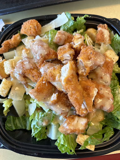 What we ordered: I ordered a large Caesar salad with crispy chicken and corn bread. The Caesar dressing was on the side in a small container. The romaine lettuce was fresh, and they did not spare on the parmesan cheese. The crispy chicken was tasty and delicious. Indeed, it was crispy, yum!